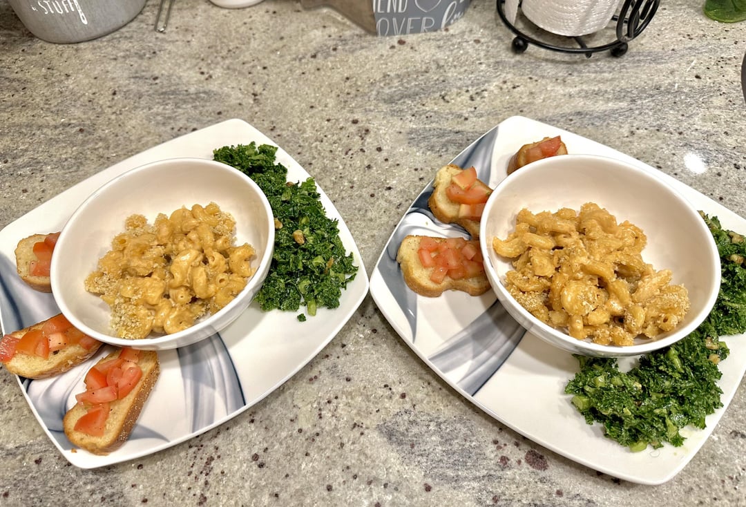 Highly recommend this fun dish! Mac and cheese — TWO WAYS! With bruschetta and Kale! HelloFresh comes through again!