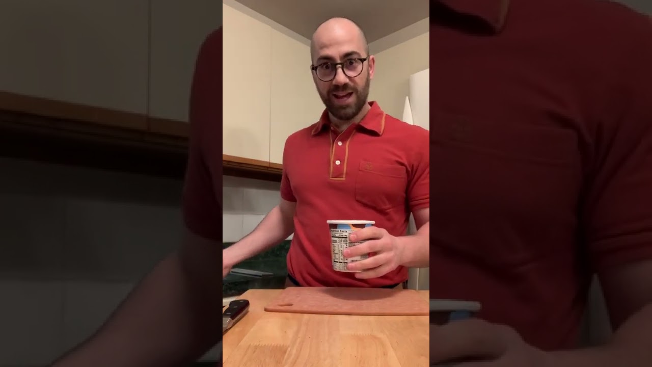 The ingredients that go into ice cream egg yolks vanilla extract and ground vanilla beans let’s give this a try again um like a lot of ice creams have chocolate vanilla in there you got some nice swirl action going on i am going to dissect it see if we can see some cookie pieces