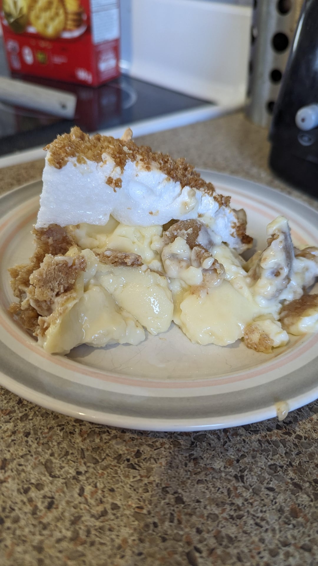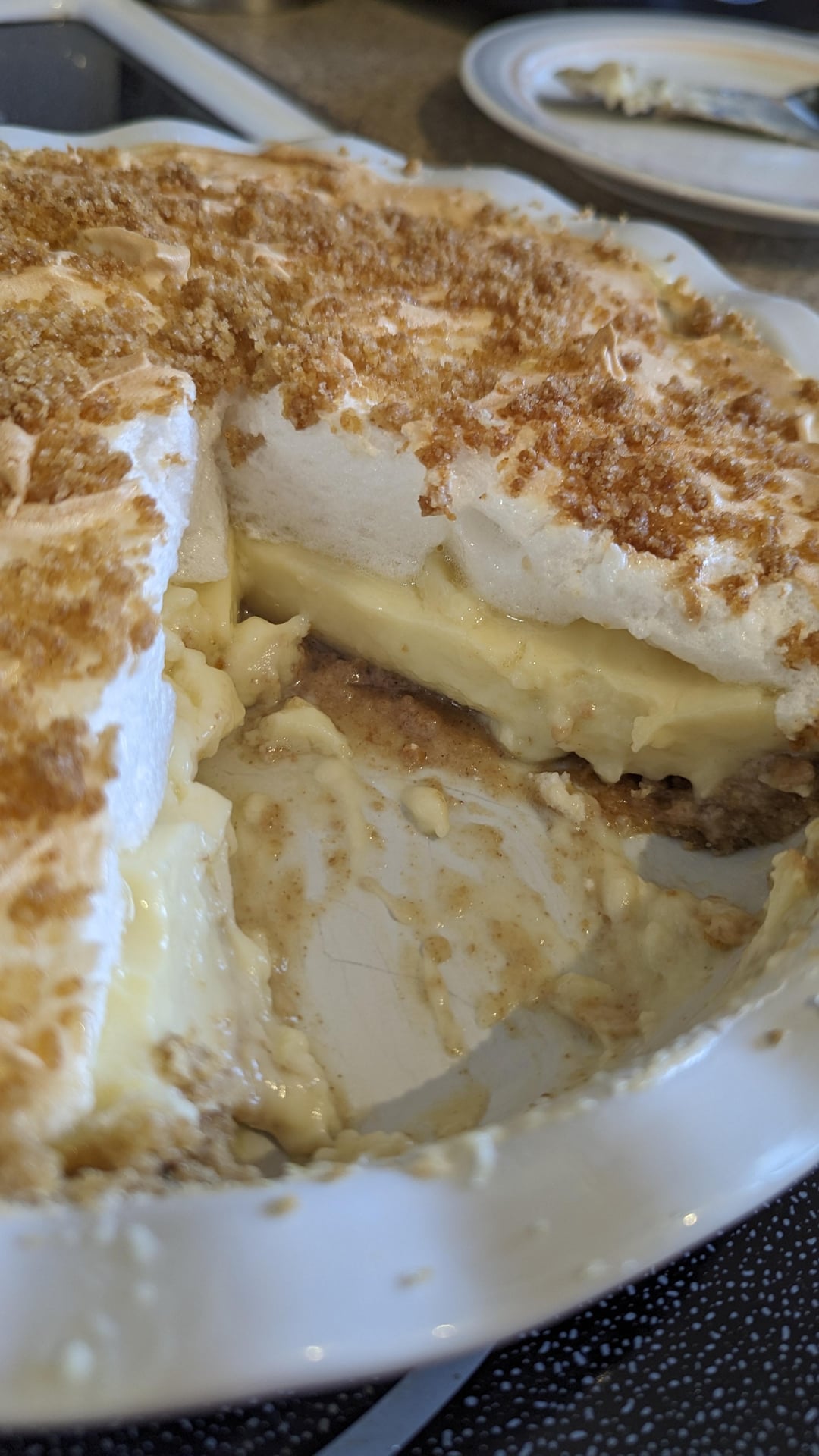 A few things to note: this pie does not serve nicely. Meringue on custard and a crumbly crust = an absolute disaster on the plate but it's so good it really doesn't matter. This was after letting it cool in the fridge for 6 hours.