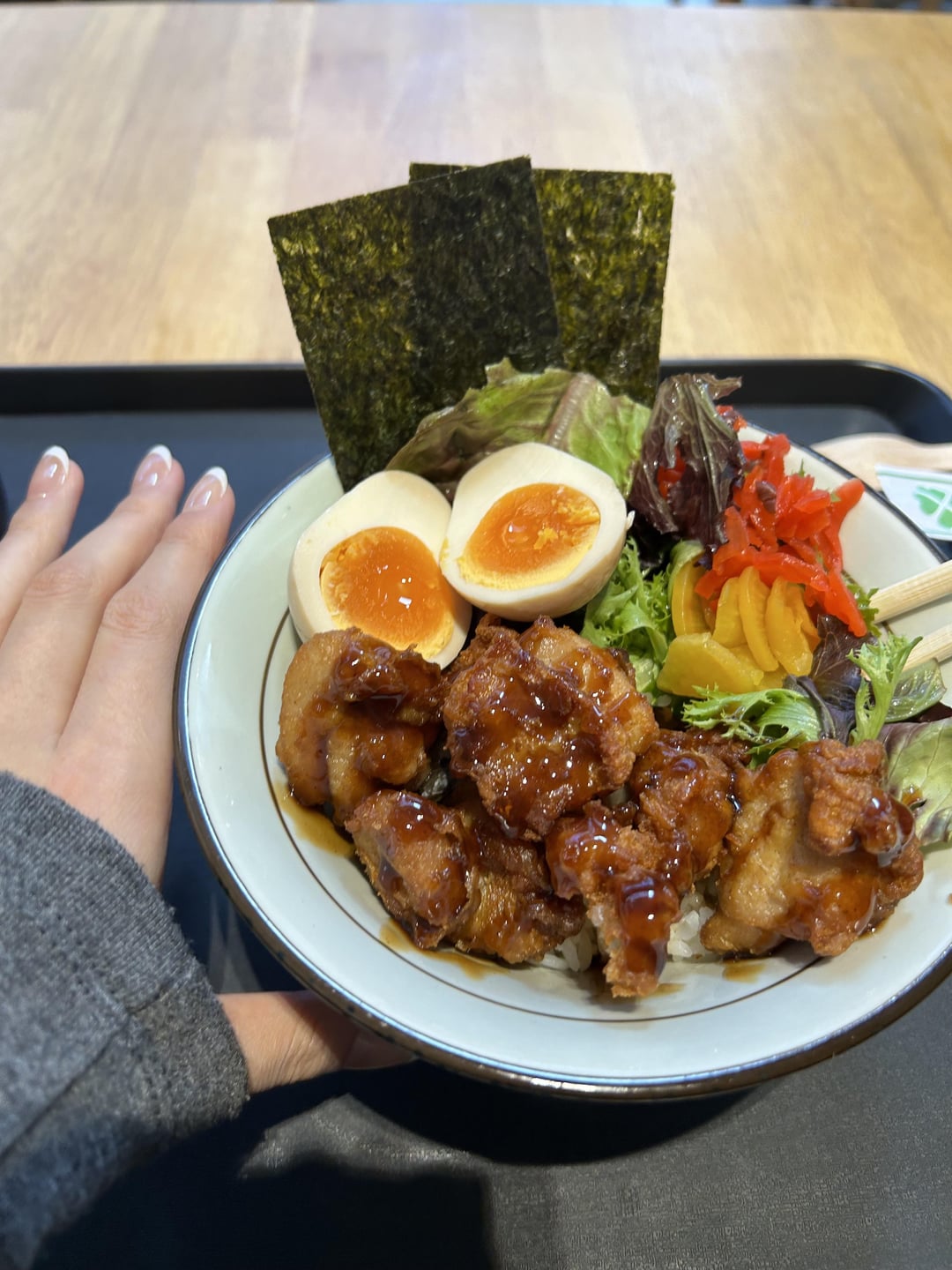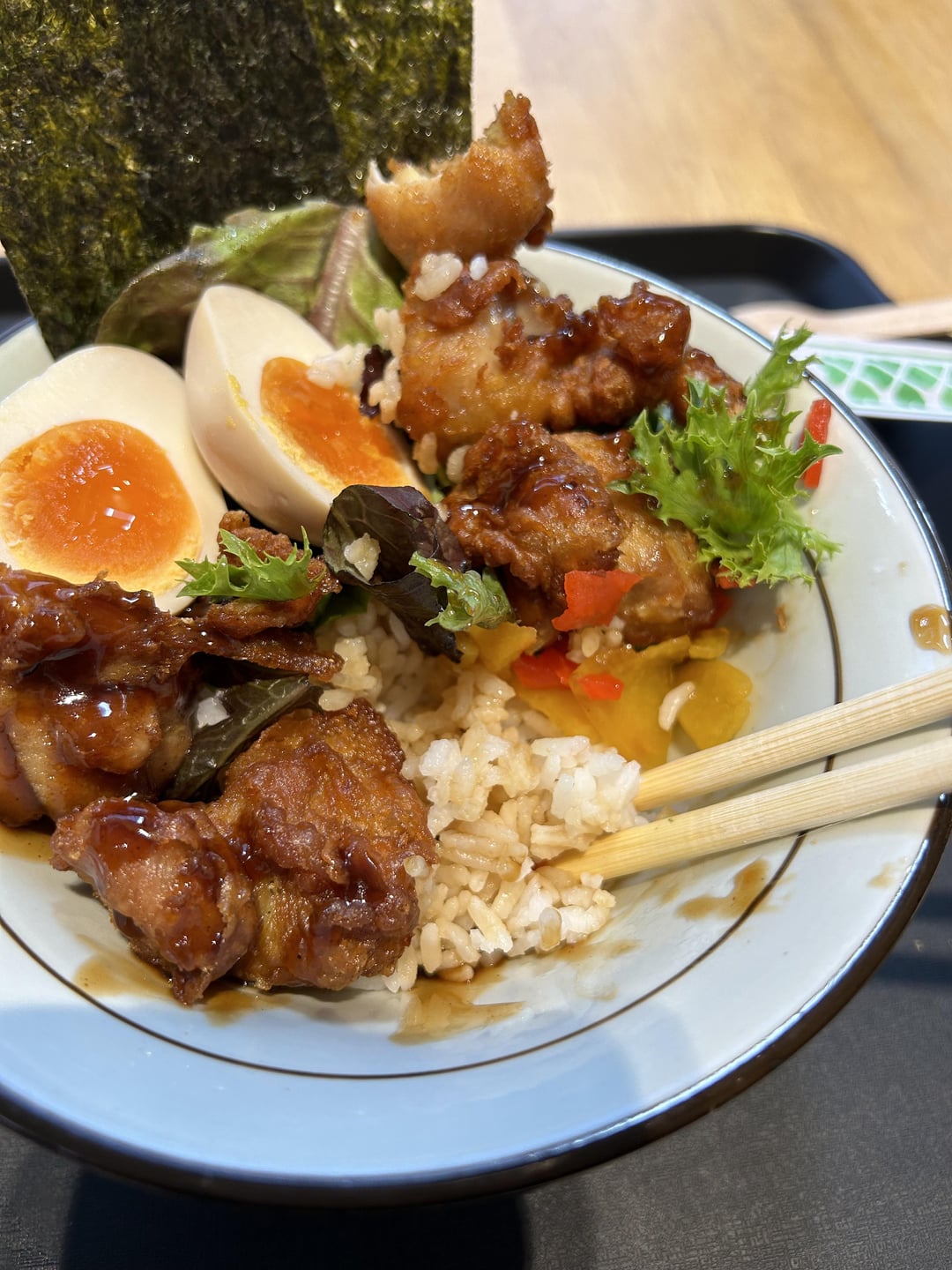 chicken karaage ([nutritionix reference](https://www.nutritionix.com/i/nutritionix/chicken-karaage-1-piece/5ade455dd51e1061315ed32c); ≈130-140g cooked) ≈350-400