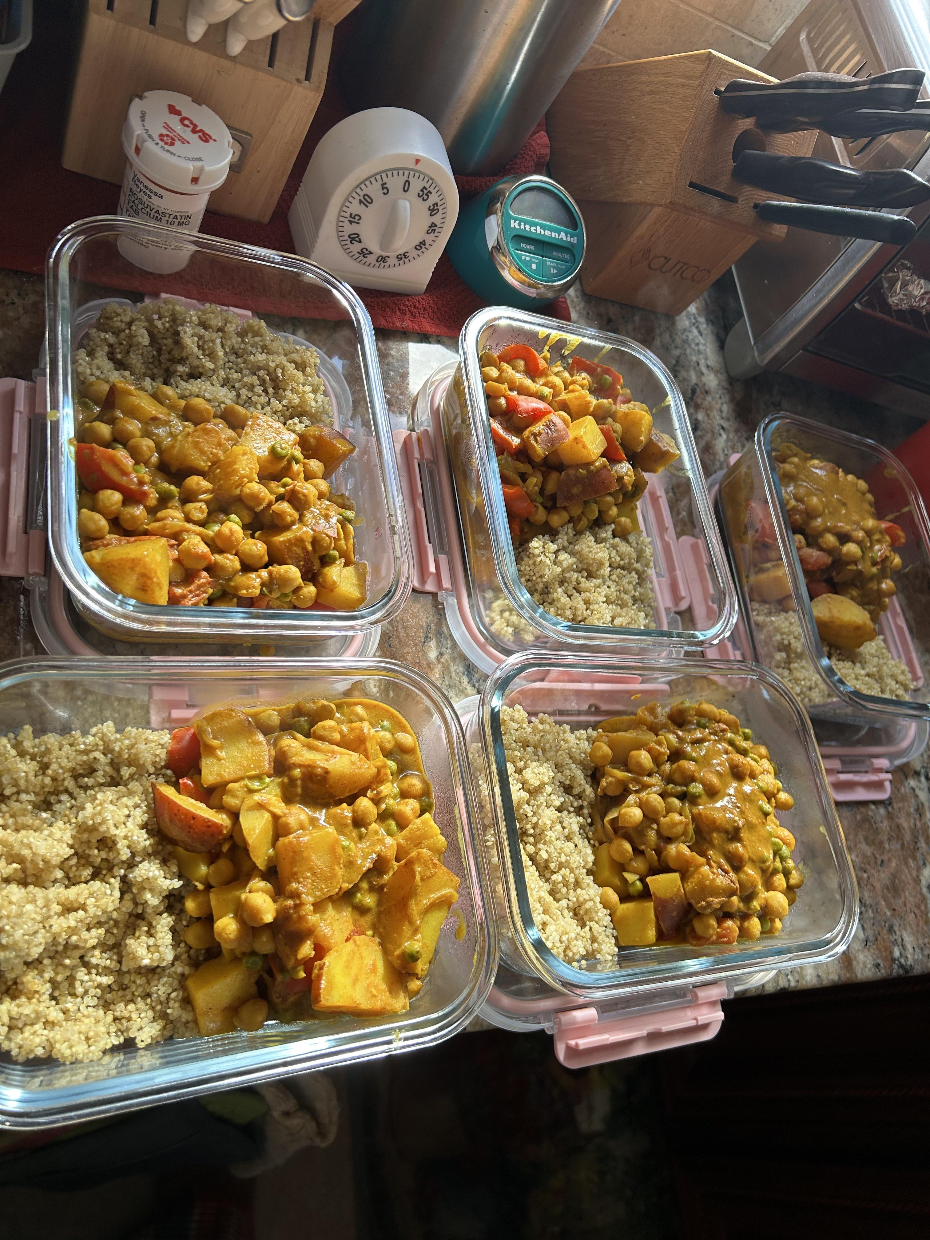 my mouth is watering rningredients: potato, chickpea, almond milk, bell pepper, tomato, peas, onions, curry powder, garam masala, paprika, cumin, lime juice, garlic, quinoaby catsonmybed 2 Comments Affectionate-Sea-697 2 years ago Omg looks so good Friendly-Hamster983 2 years ago Got a recipe for that curry, or just something you throw together?Write A CommentYou must be logged in to post a comment.