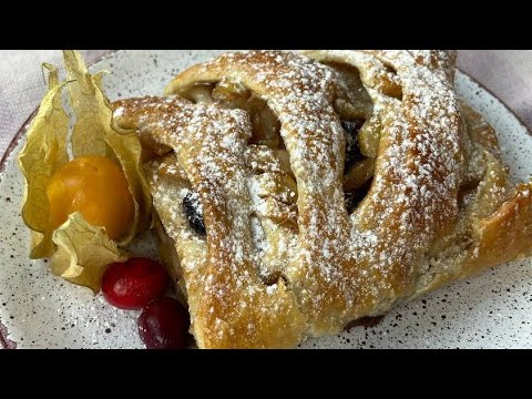 Mix egg yolk with water, brush the strudel. Bake at 180 degrees Celsius for 25-30 minutes.