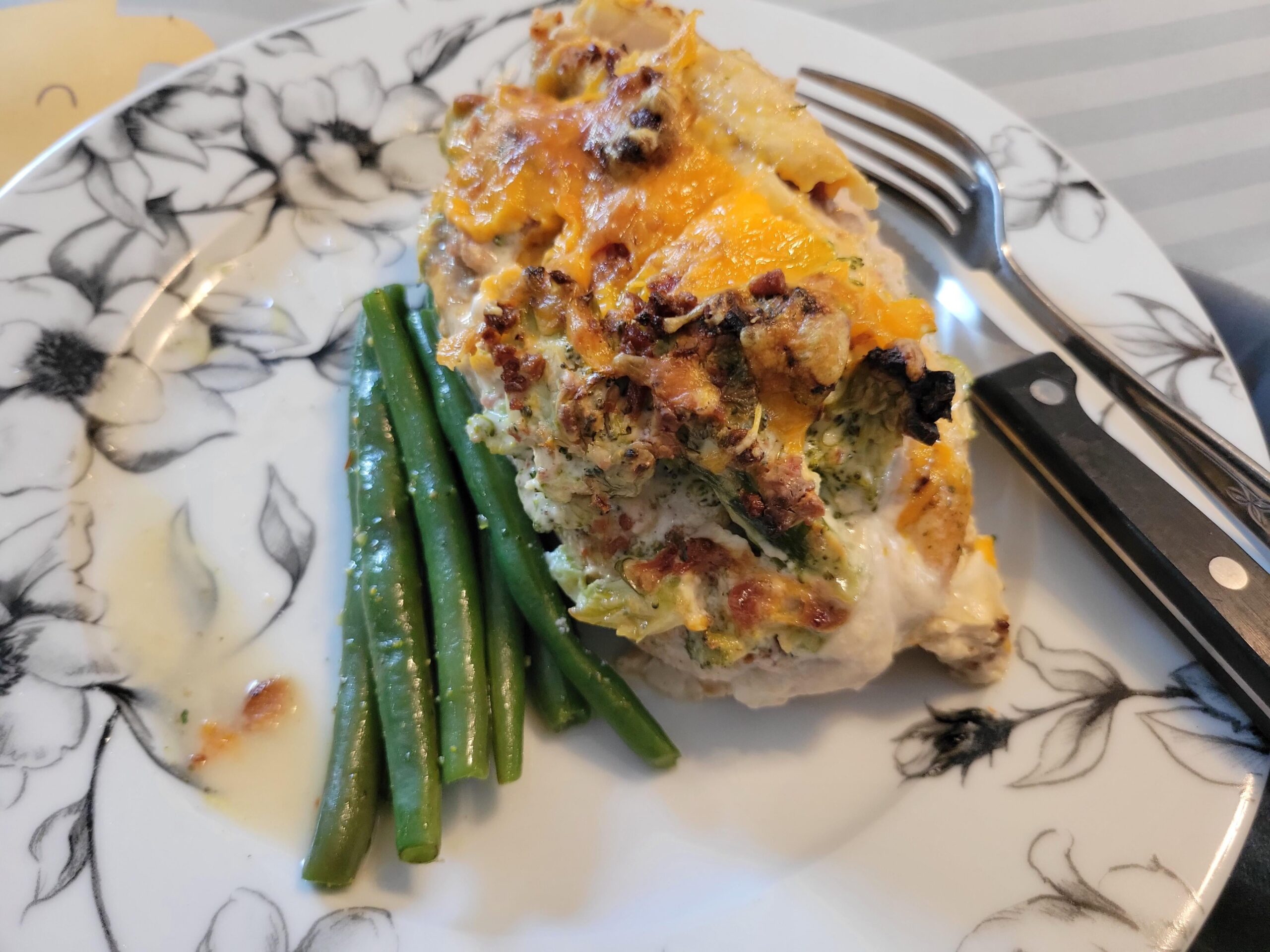 Made stuffed chicken with green beans Stuffing was cream cheese Broccoli bacon bits cheese and maple bacon seasoning! It was so good! by vern8748 Write A CommentYou must be logged in to post a comment.