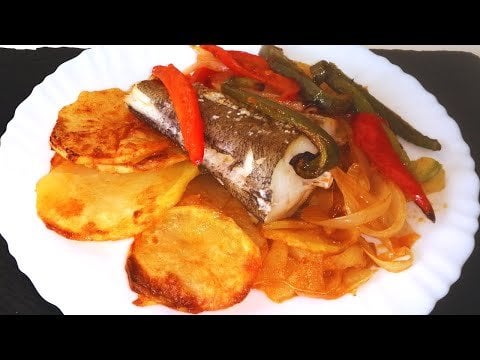 Sliced Potatoes, Fish and Vegetables Cooked In The Oven