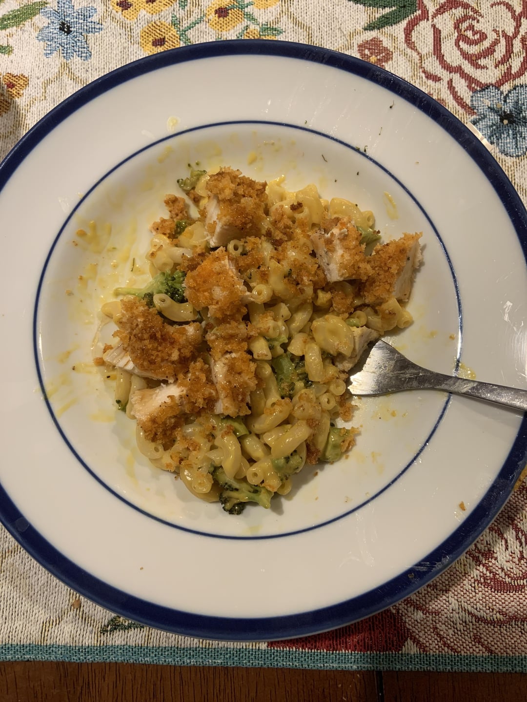 Boxed Kraft mac & cheese, “thick & creamy” kind + leftover HF chicken cutlet & broccoli