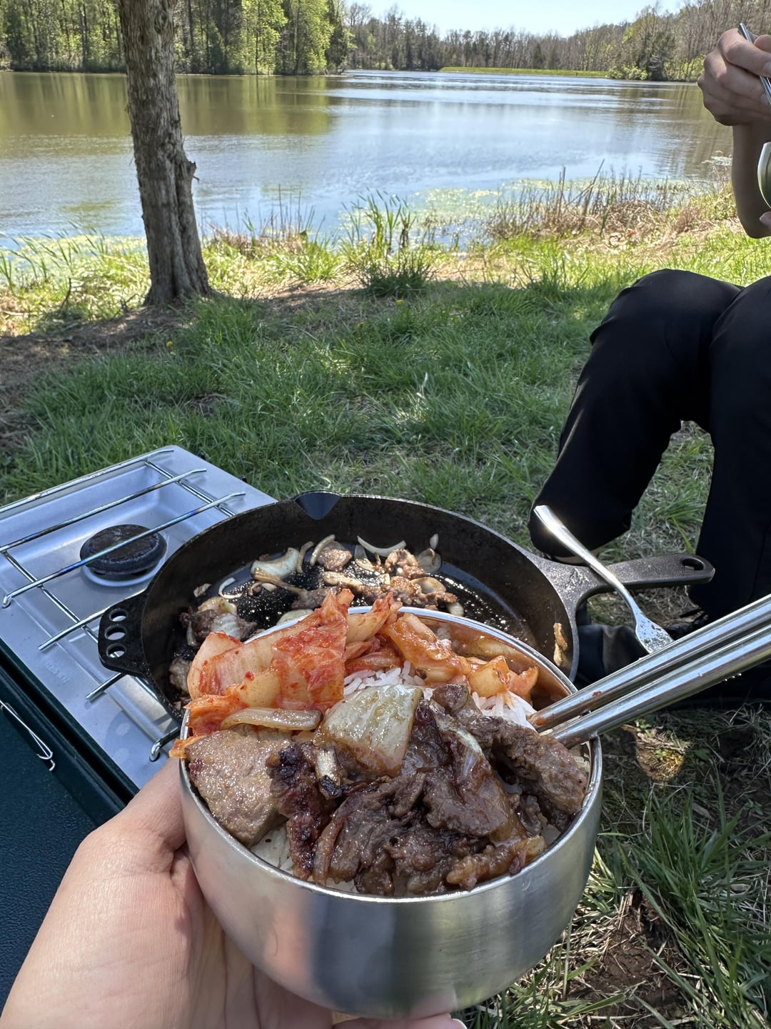 I feel that I came a long way from when I first fell in love with Korean food. Everything shown in the picture is homemade and took 30 mins prep time, because I had the majority of it in the fridge already. My fridge looks like one of a typical Korean household now haha…