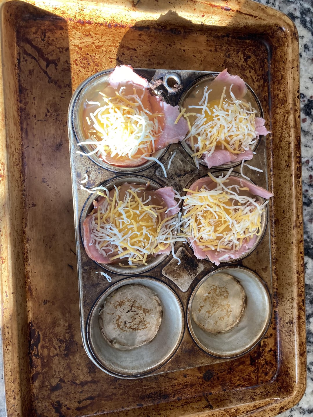 _somelikeithot 2 years ago It looks good! So you put the bacon in the oven raw? Also how many eggs in one muffin, just one?