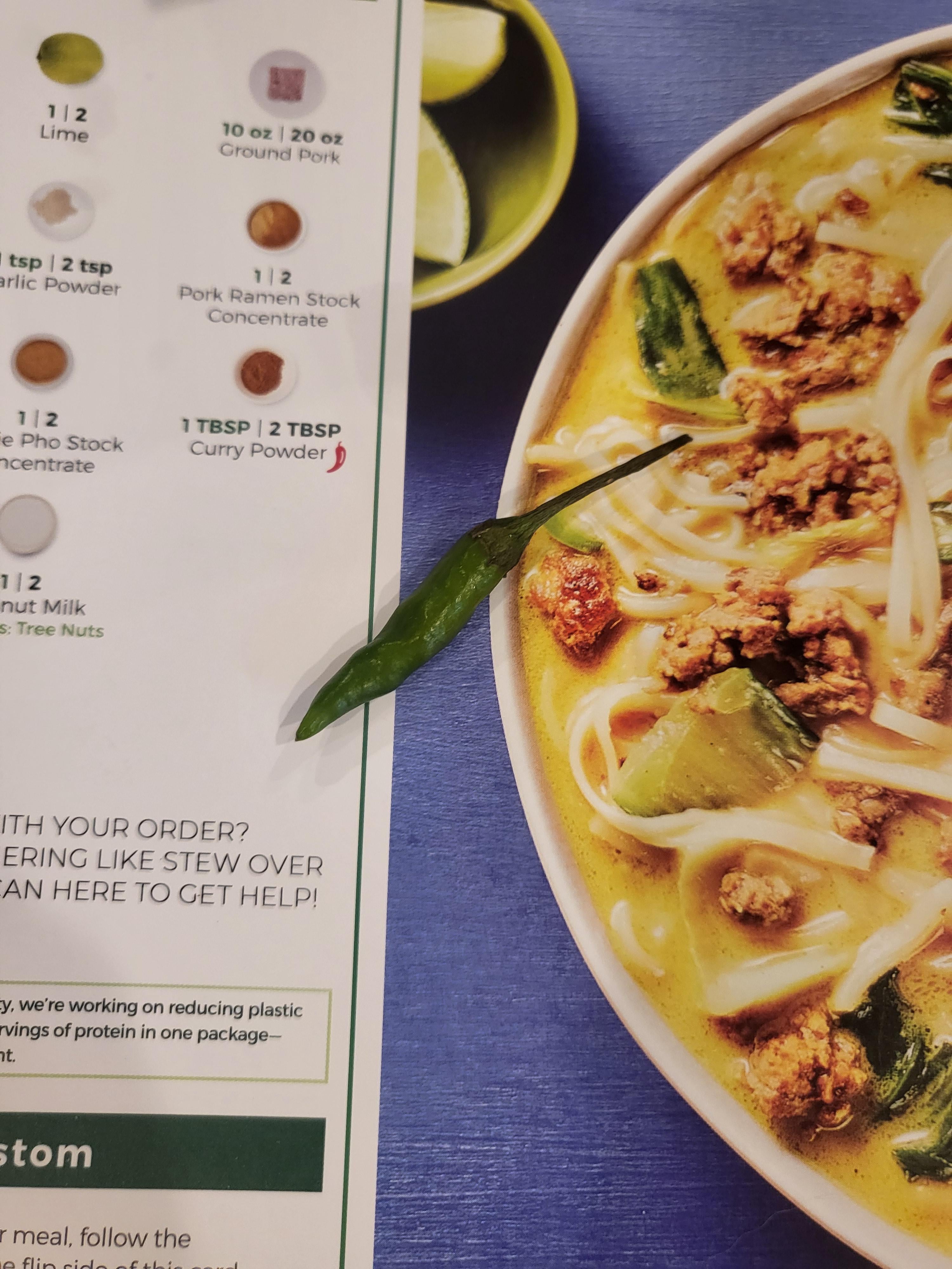ETA: I had no idea that people constantly ask about this here because I am only an occasional visitor when boredom is at its apex. (This does not occur often, as my life is mostly spent hurtling toward a deep, dark abyss of chores, work, and Google reminders.) However, if you get the meals for 4 people, save the second pepper and freeze it for curry. 👍