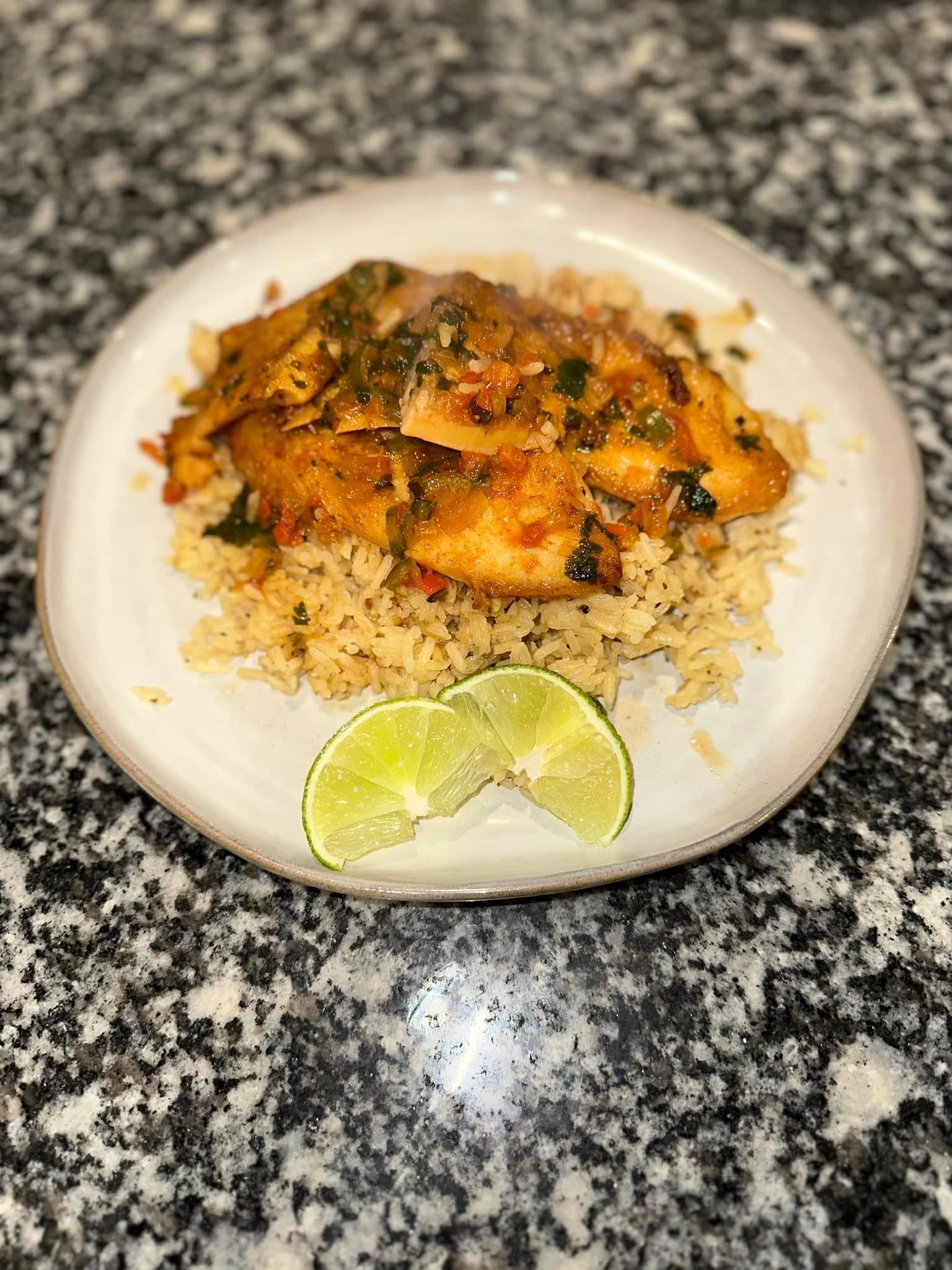 Add tilapia on top of bed of rice.