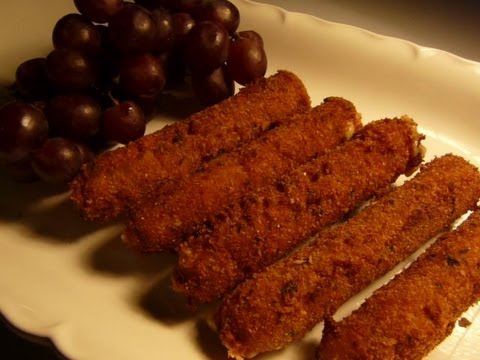 Dip each cheese stick in flour, shake off excess flour, roll in egg mixture, toss in seasoned bread crumbles, roll back in egg mixture and, last, back to bread crumbles again. Set aside.
