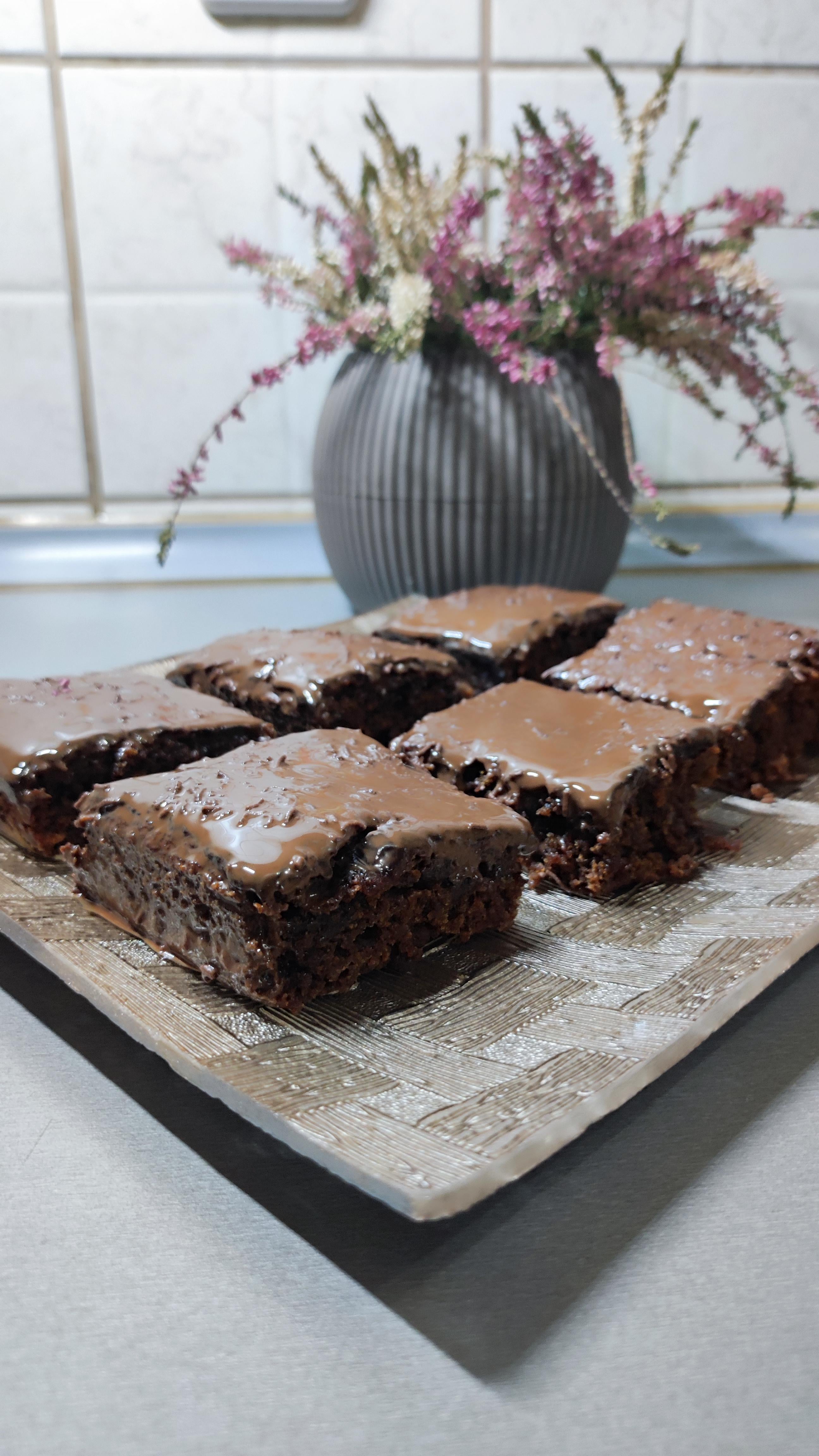 Bake it at 180 degrees for 35-40 min. After we have finished baking, put a few tablespoons of plum marmalade and spread it thinly over the entire surface.