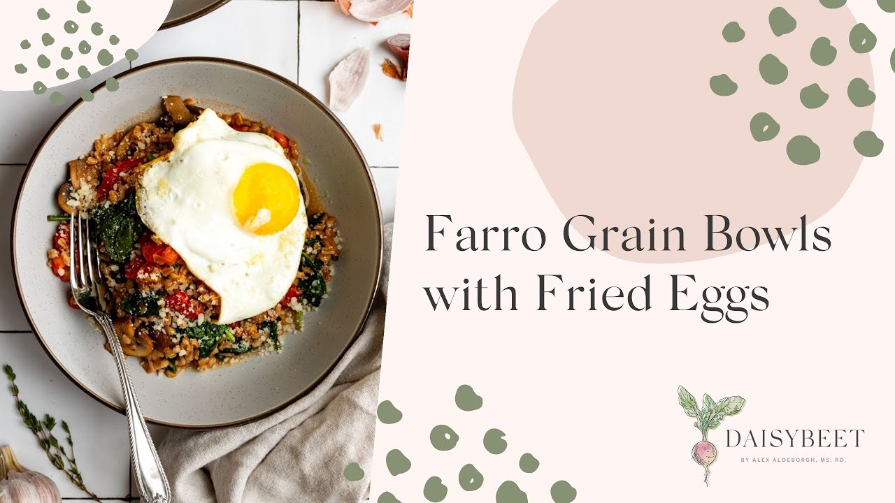 This farro grain bowl recipe is warm, nourishing, and quite easy to make. Nutty farro is mixed with a sauteed vegetable medley that includes mushrooms, tomatoes, and spinach. Toss everything in a zippy lemon dijon dressing, and top each portion with some parmesan cheese and a fried egg. Ready to enjoy in 45 minutes or less!