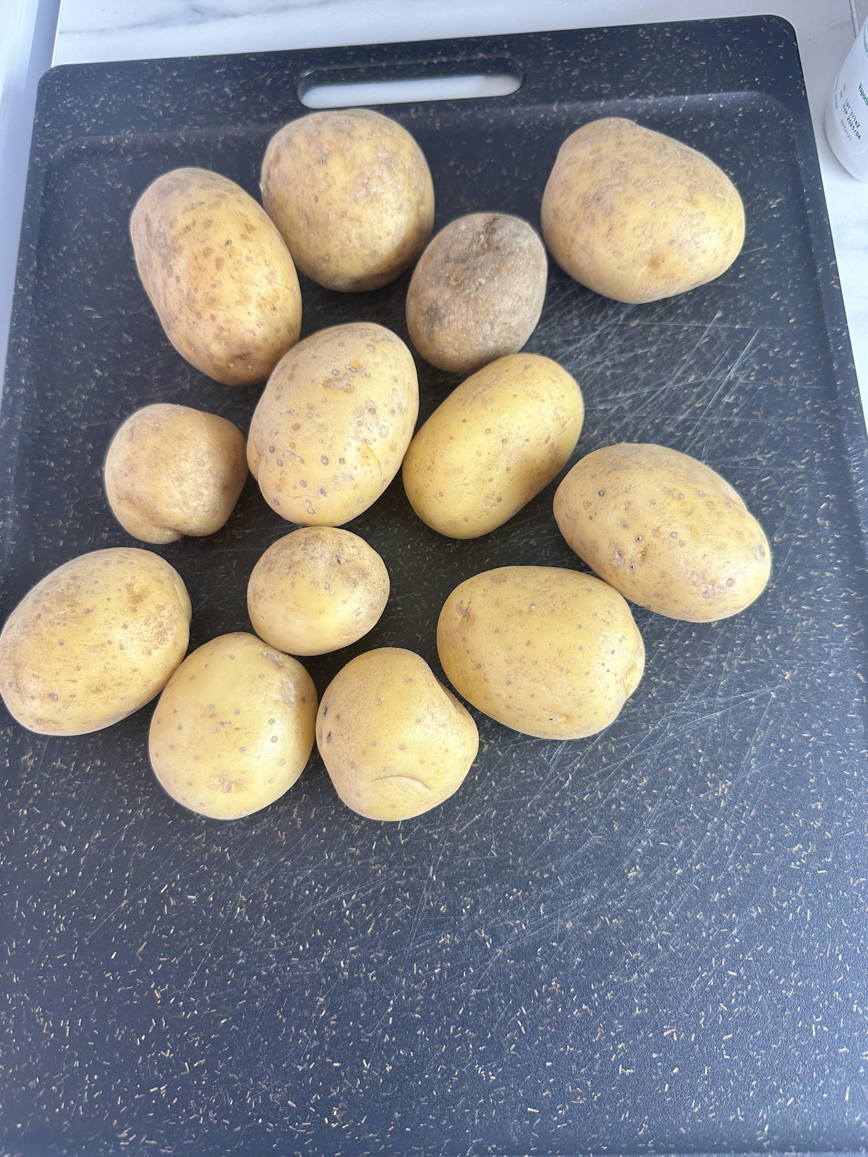 With the smallest potatoes possible 🤣🤣🤣 not a complaint I don’t actually care if I make wedges or not, not sure why they stopped sending me russet potatoes though.