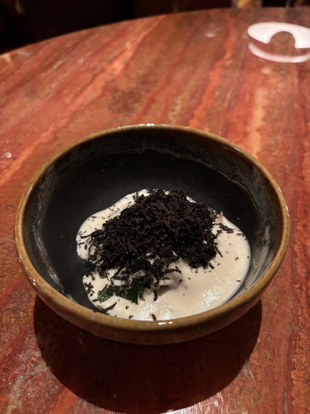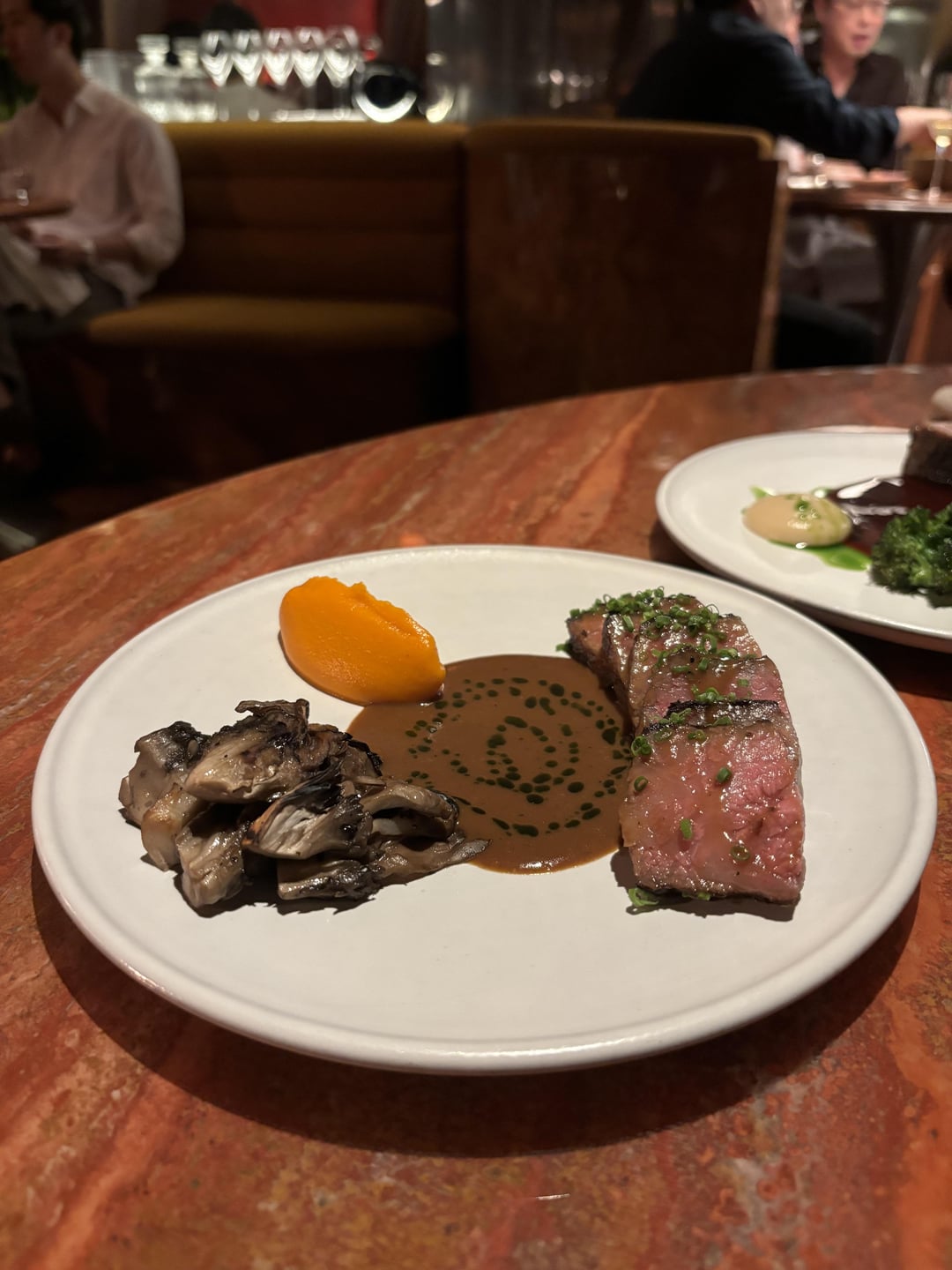 (9) Short ribs, maitake, sauce diane, carrot. This one is amazing. Everything is cooked perfectly and pairs well together.