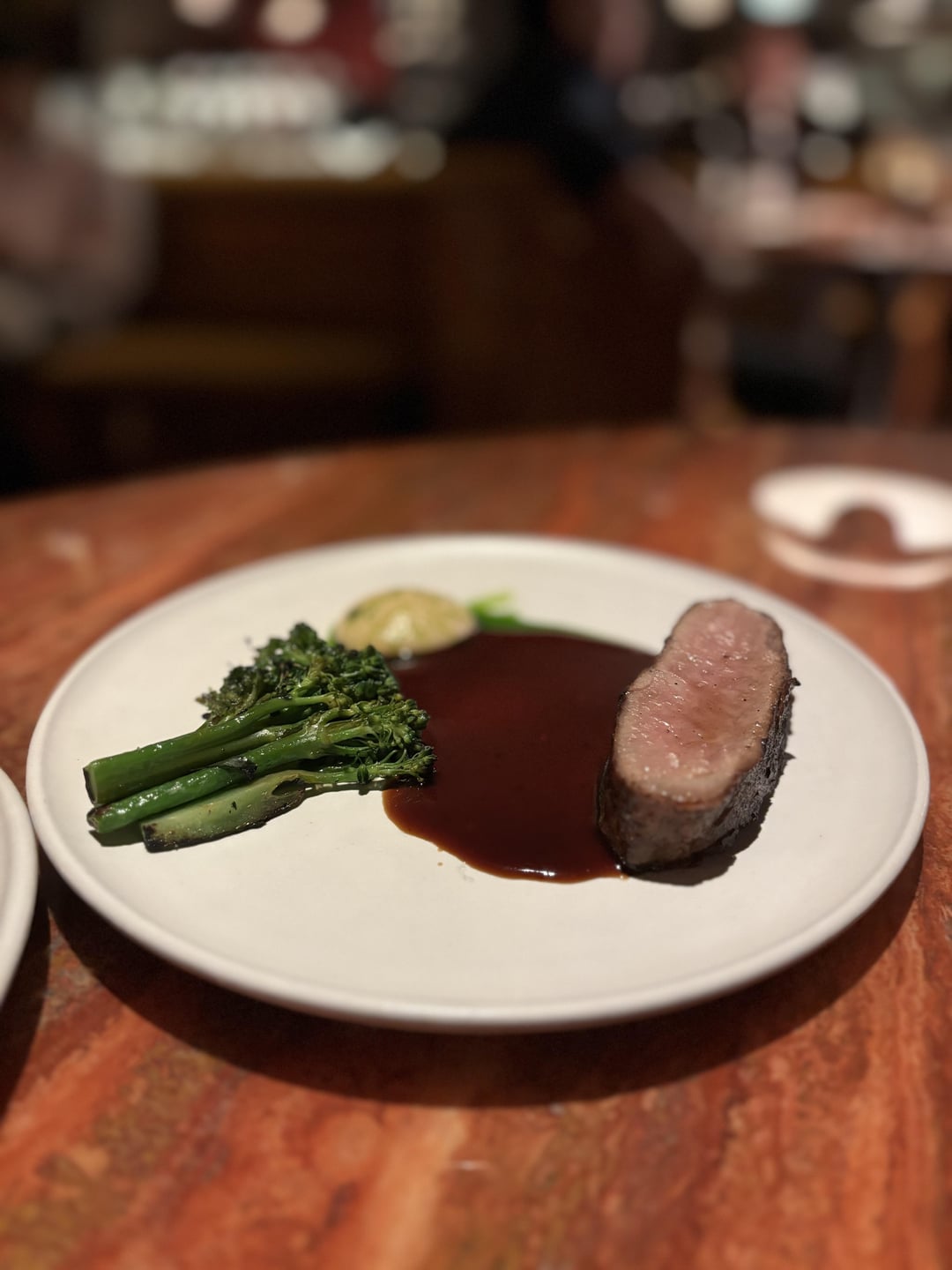 (8) Iberico Pork Presa, broccolini, cauliflower, blueberry sauce. Pork cooked well and pairs bery well with the blueberry sauce. Broccolini cooked perfectly. However, the cauliflower (though good on its own) does not seem to pair well with the sauce or pork.