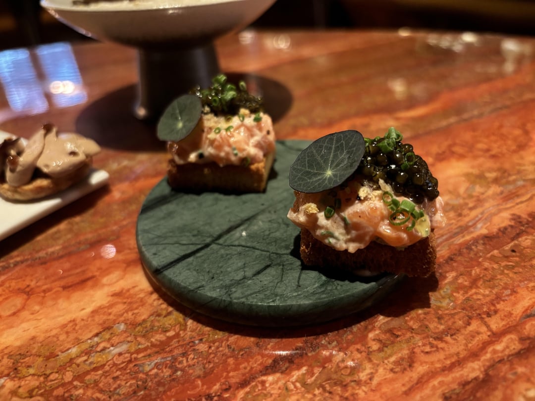 (3) Fjord trout with caviar. Amazing dish with nice balance of acidity and saltiness.