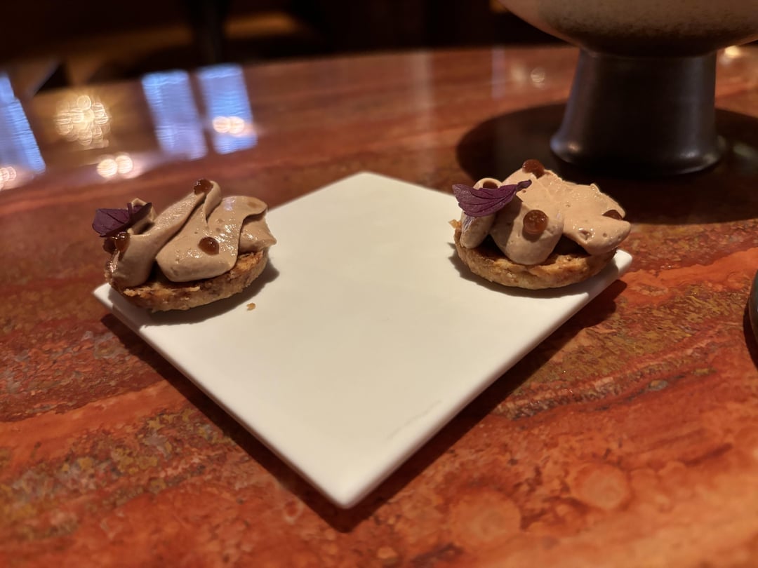 (2) Chicken liver with parmesan crackers and sherry. Good opener nothing to comment on.