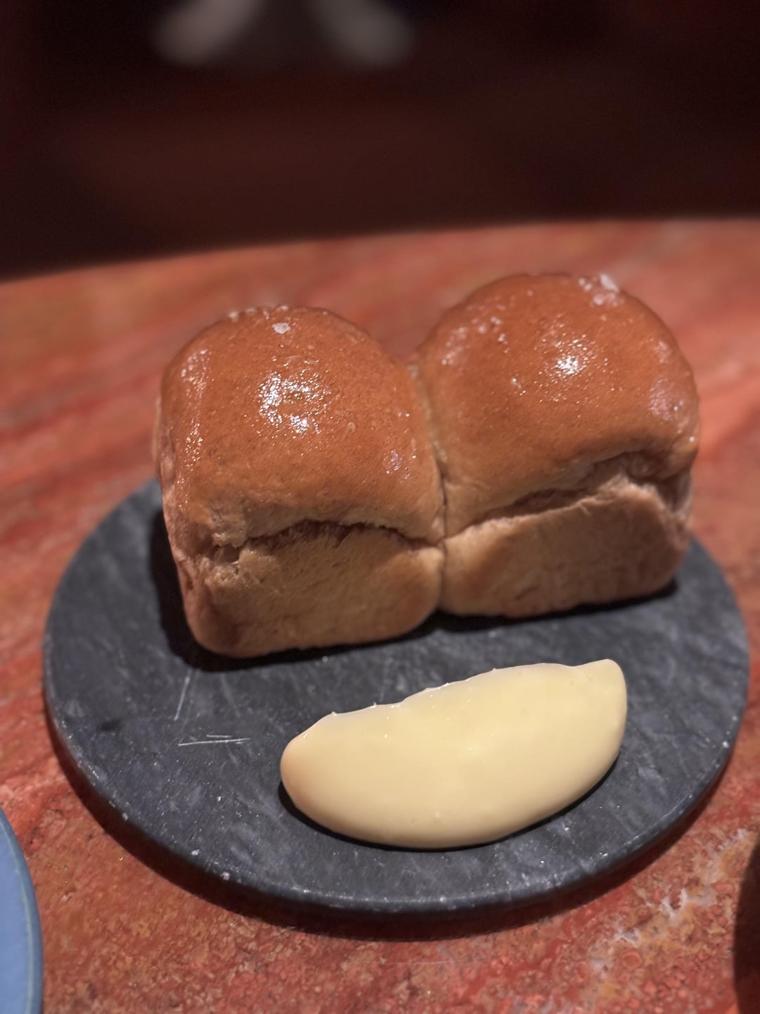 (7) Bread and sakura smoked butter. This is a bit disappointing as butter definitely needs more salt / character and the bread can be a bit moist-er.