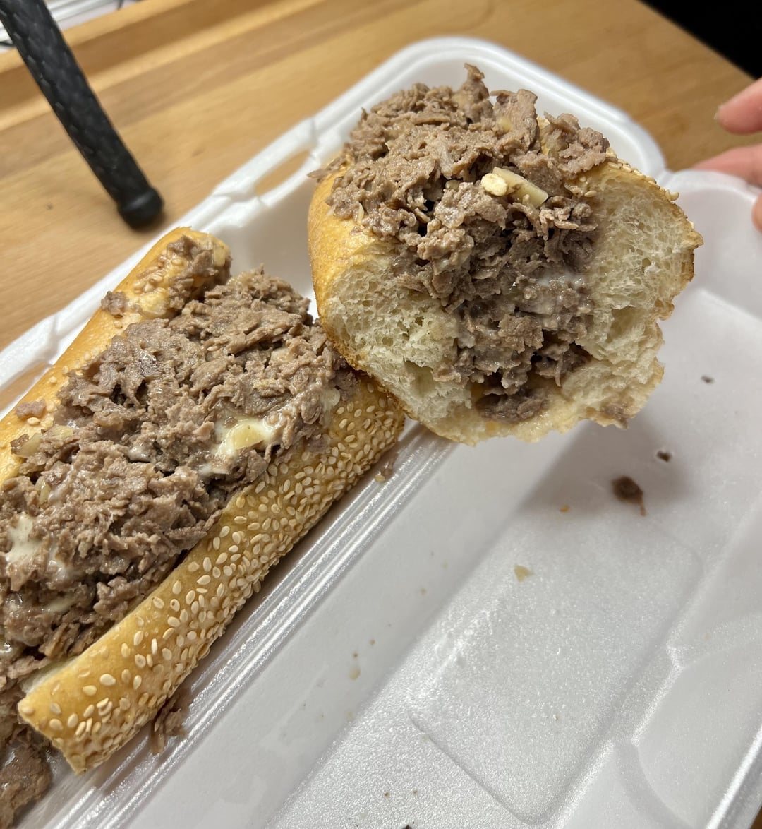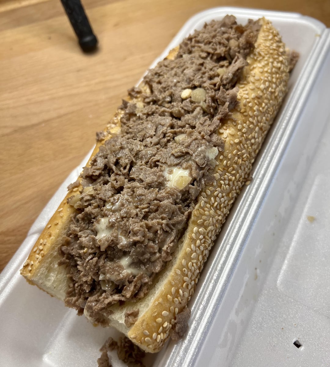 Cheese steak looks good. I’m not a big fan of those styrofoam containers thought because they tend to make the rolls a little too soft or soggy, especially if you have a bit of a ride home.