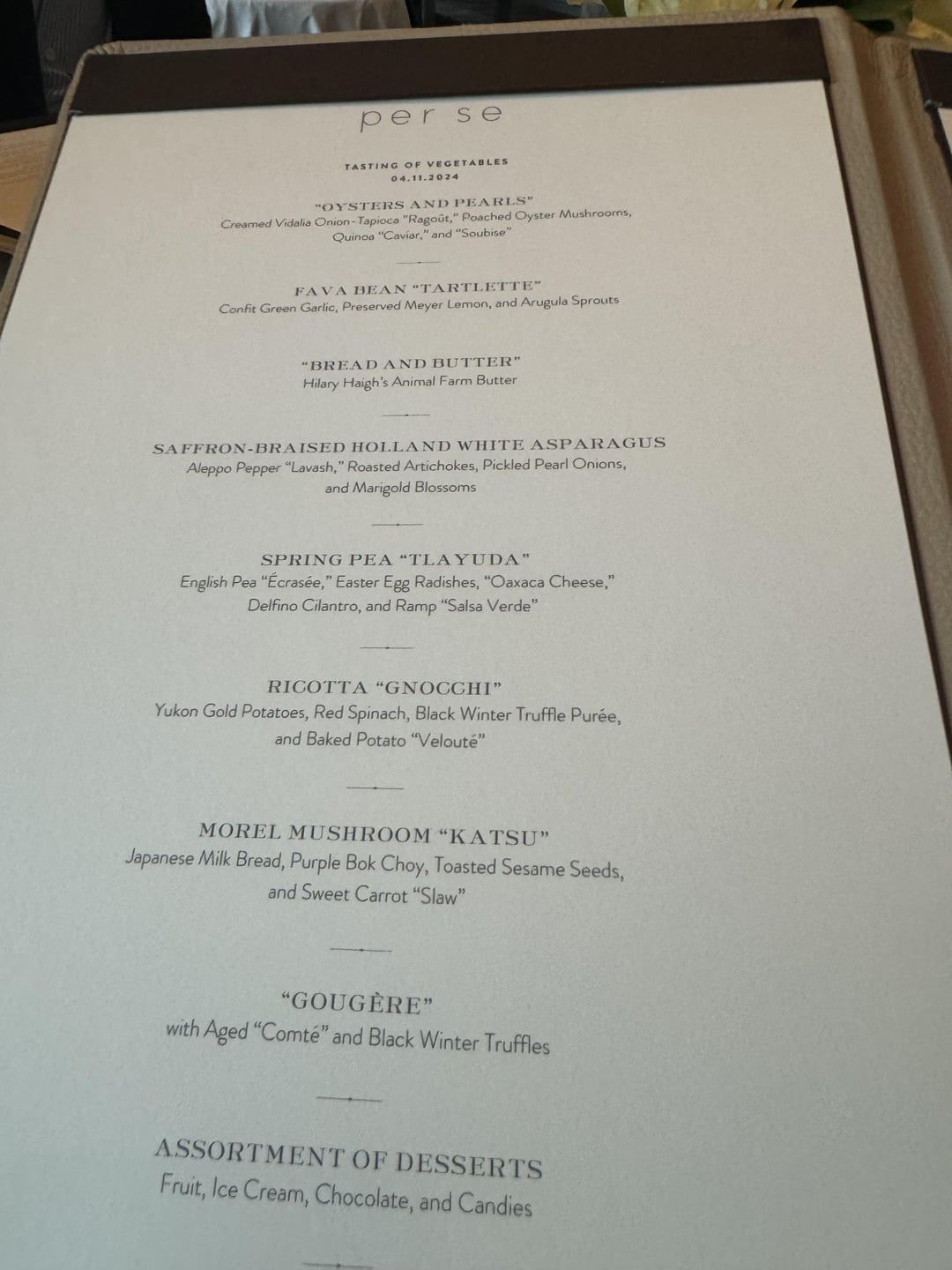 Great dining experience. Different staff members brought out each course and explained to us what the course contained. Ten courses (last pic is that of the menu). The dessert course was my favorite. I also loved rhe Ricotta Gnocchi and Morsel Mushroom Katsu, but everything was divine. I rate 9/10