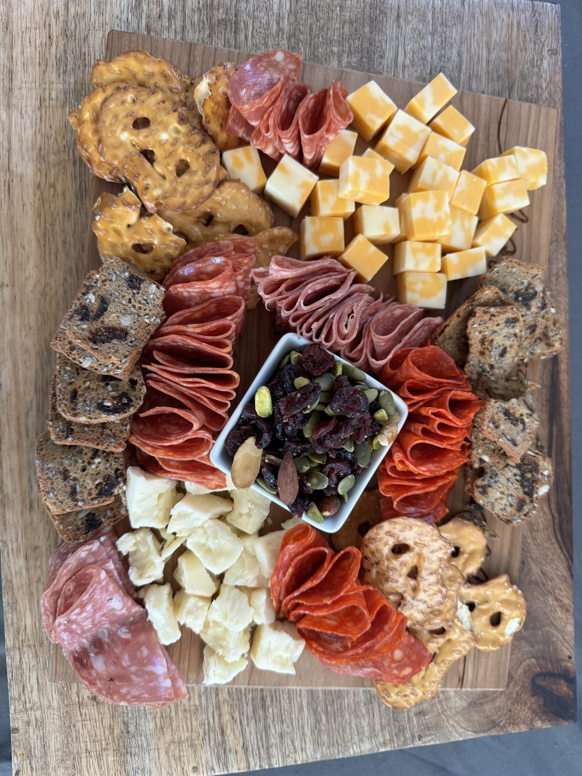 This was just for a couple friends. Small but so yummy with things around the house. Colby and Asiago, pepperoni and salami and some crunchies. What else would y’all have added?