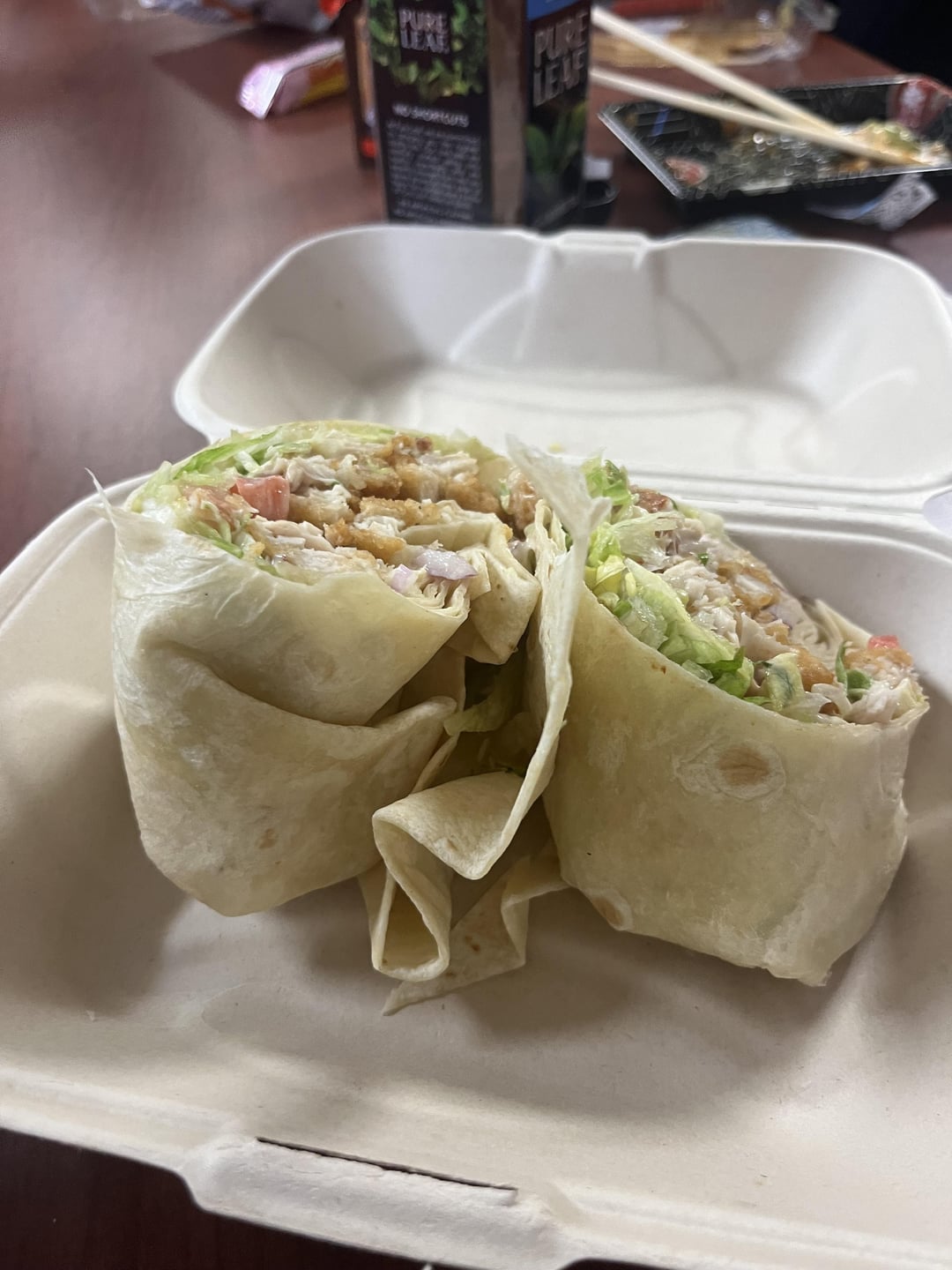 has lettuce, tomatoes, onions, and chipotle mayo. it’s a white wrap and has 3 tenders in it by Effective_Step1810 4 Comments Financial_Office3102 2 years ago I’m guessing somewhere in the neighborhood of 600-700. Depends a lot on how much mayo they put in. EccentricDyslexic 2 years ago 400 etoilehannie 2 years ago wrap: 200three tenders: 250veggies: negligible, count like 35 if you want!mayonnaise (1.5 tbsp): 150around 600 would be my guess! Dubxvonallem7748 2 years ago 650 maximum 🌯 wheat tortilla 70 gr 216 kcal, chicken tender 340 calories vegetables about 40 maximum, two tablespoons of chipotle mayo 60 kcalWrite A CommentYou must be logged in to post a comment.