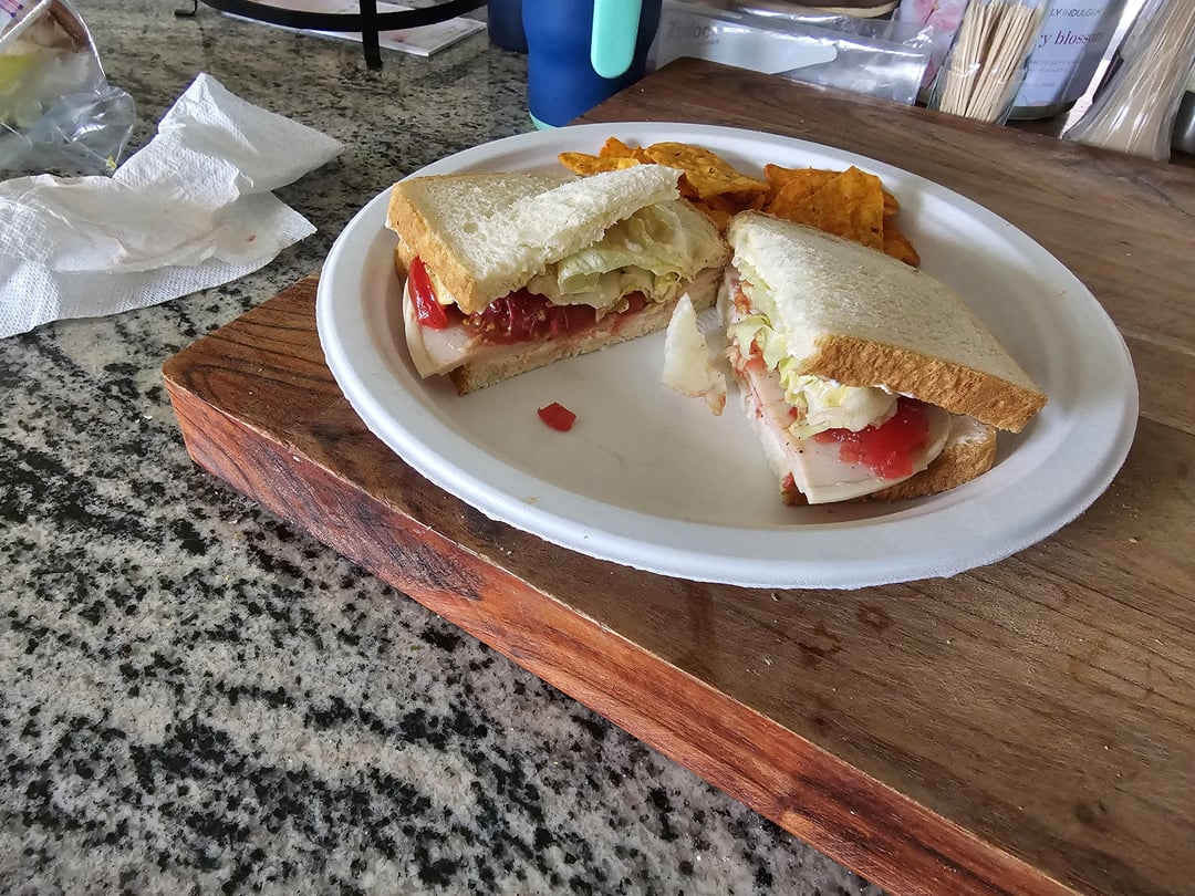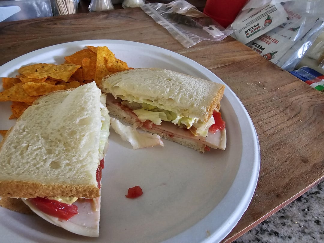 Made a turkey sandwich with lettuce, tomatoes and Mayo/Dijon Mustard for lunch along with Doritos