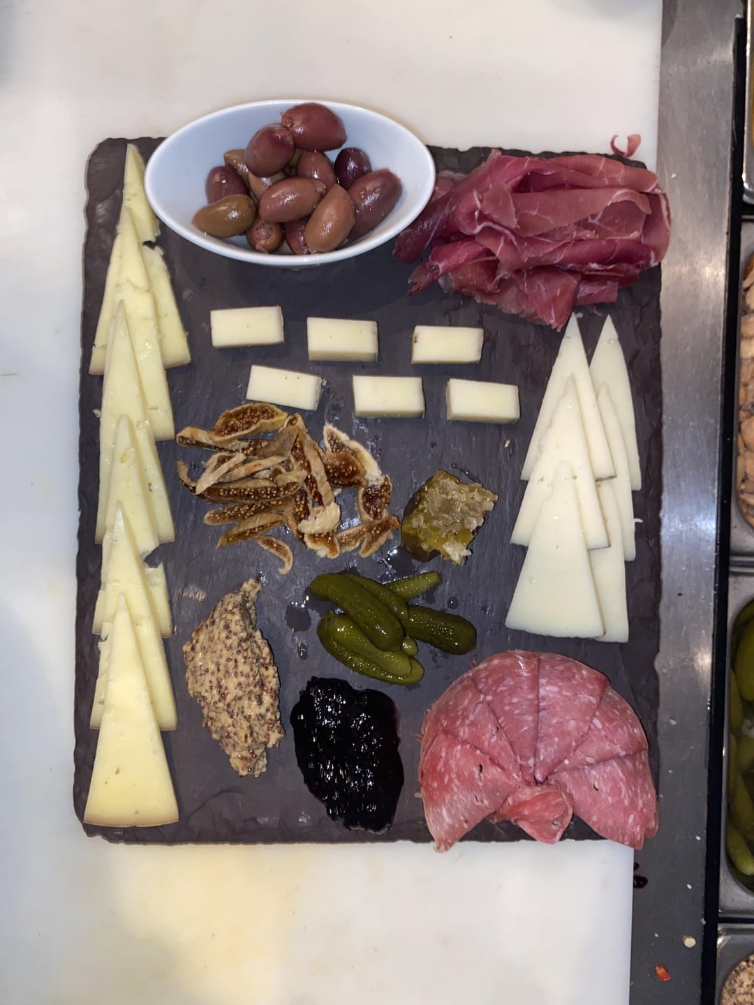 I recently started working as a chef and my station is charco and a few other apps, I ussually only have about 15 minutes to make this (including slicing meats and cheeses) sometimes less if I get multiple tickets. Considering the time restraints is there any advice y’all could give me to give my boards some more life and energy. We do either 5 meats or cheeses with 3 accompaniments or 3 meats and cheeses with 2 accompaniments. These two are from today any feed back would be greatly appreciated!