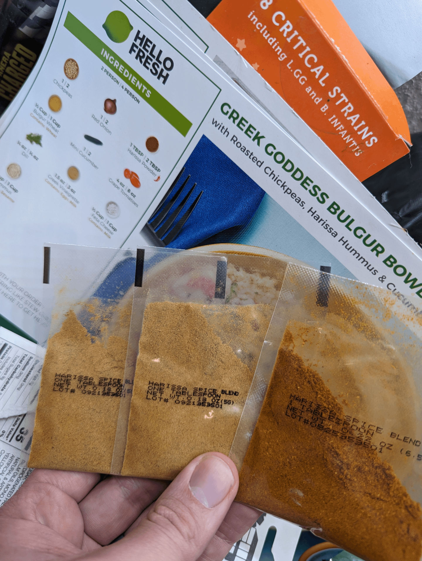 Recipe only calls for one tbsp, they sent 3, one of which is a much redder color than the others. Which should I use? by MBonez12 2 Comments Dull_Astronomer_9476 2 years ago The harissa powder I get always looks like the red one. The other two looks like there is way to much cumin. Brusex 2 years ago The darker one first. The other two are fine but I’d guess the darker one had more robust flavor. Write A CommentYou must be logged in to post a comment.