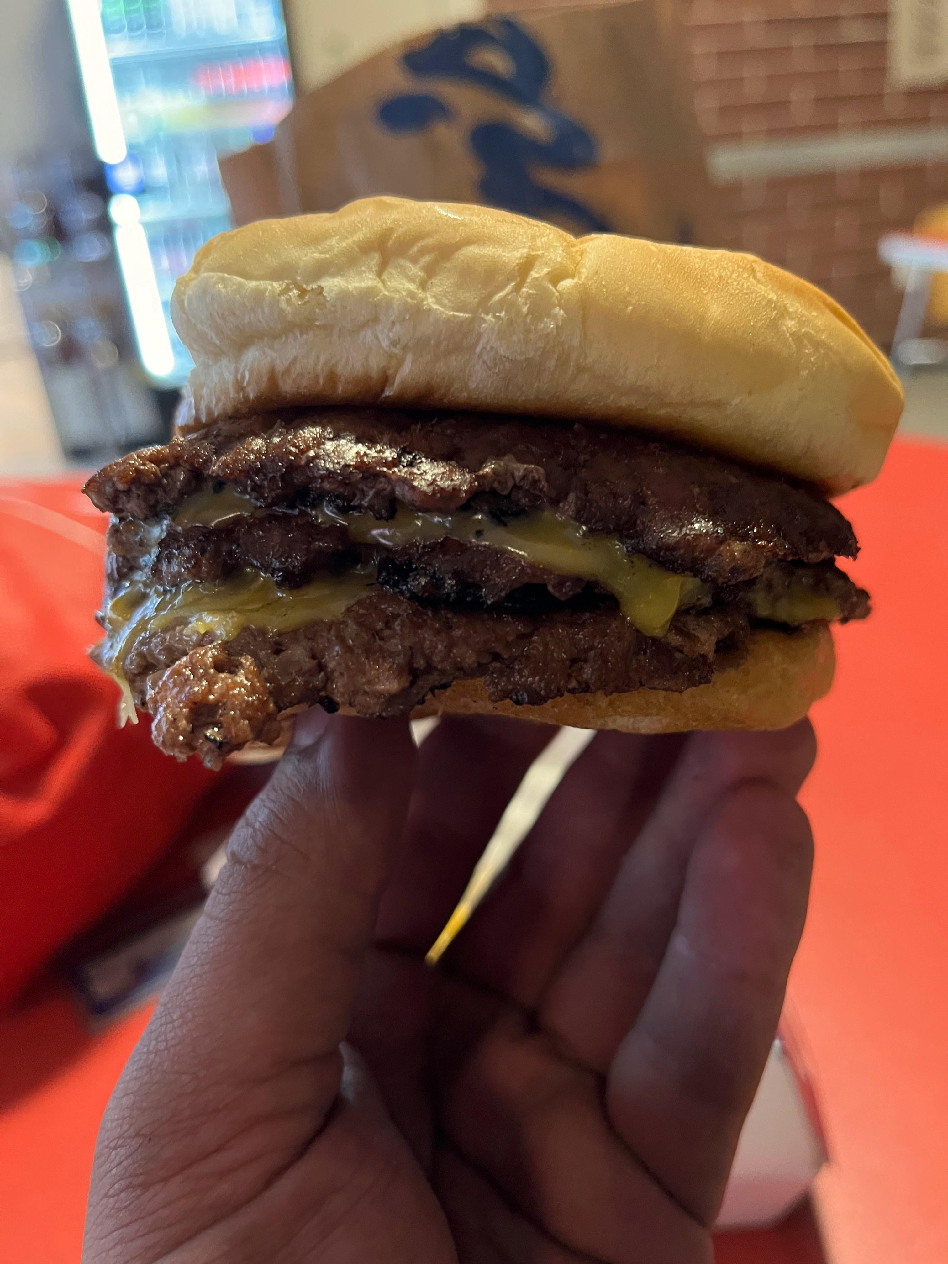 So small. I was there last week and so disappointed with the size of my triple. They are no In-N-Out.