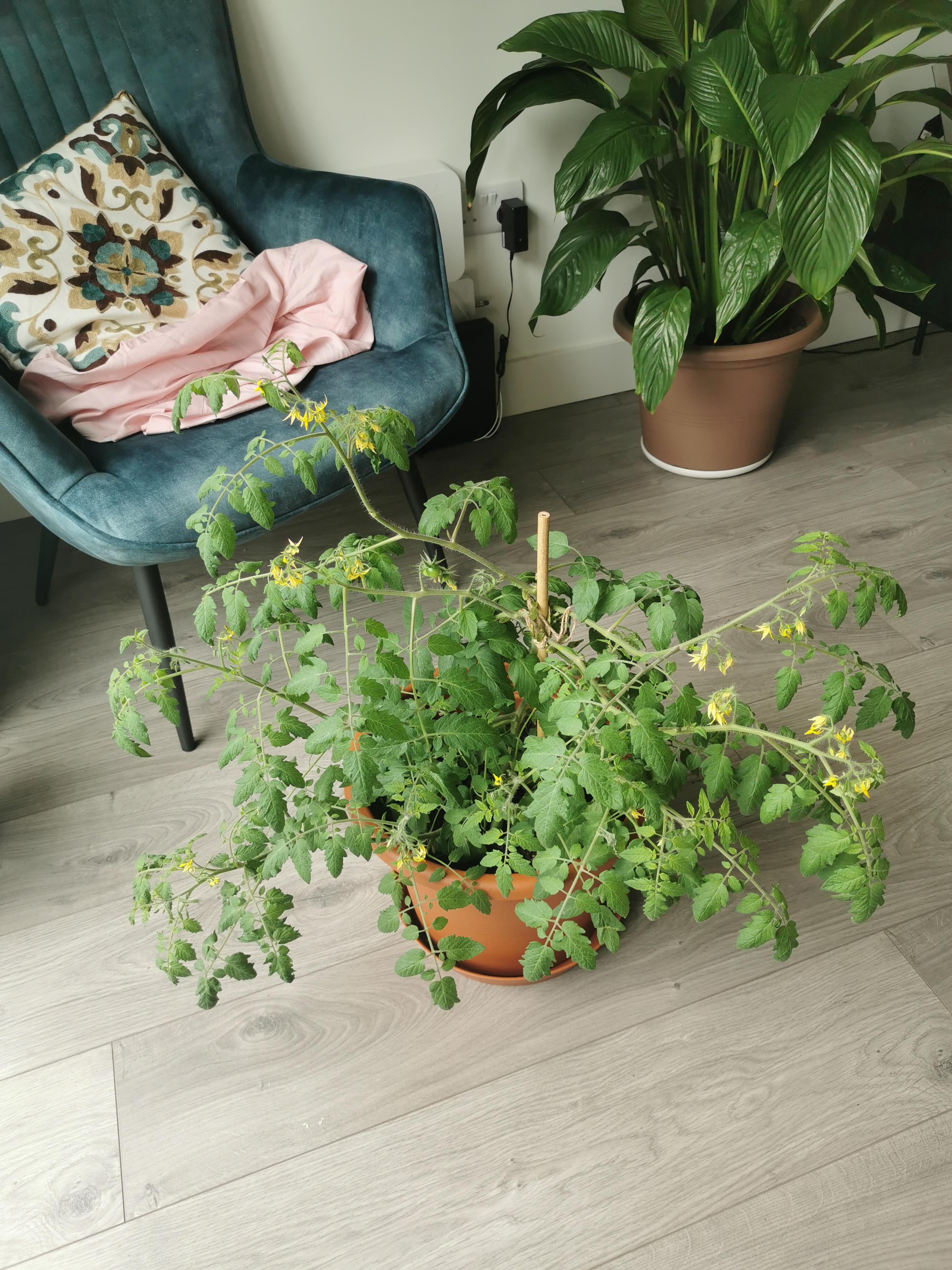 You’ve got to pick a central leader aka a single vine and stake it upward. That’s how you’ll continue to grow your tomato.