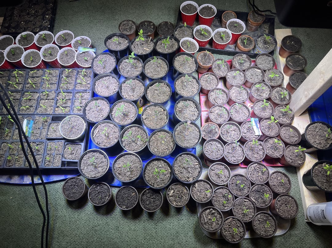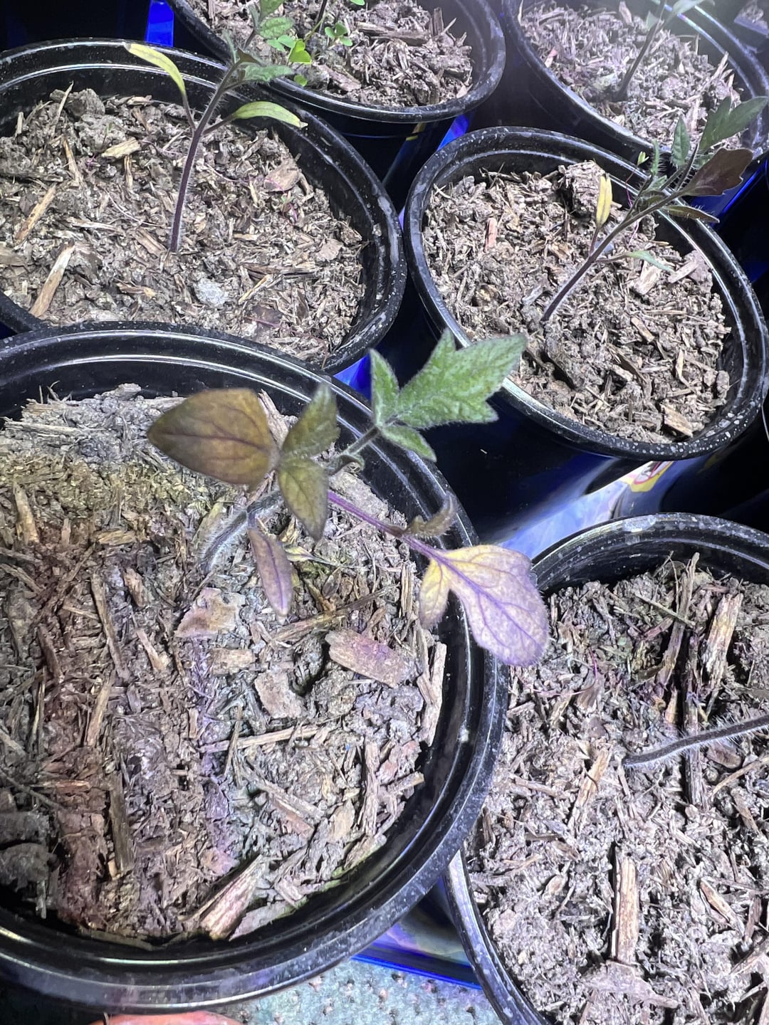 Reposting with better pictures. As title states, some of my tomato starts are looking off. Only about 1/5 of them look like this. Discolored leaves. Water about once a week once the soil totally dries out. Been feeding with half strength miracle grow in the water the last couple waterings after the first couple sets of leaves grew- the potting mix was very lean with little nutrients (will be using a different one next year). Any thoughts as to what’s going on here?