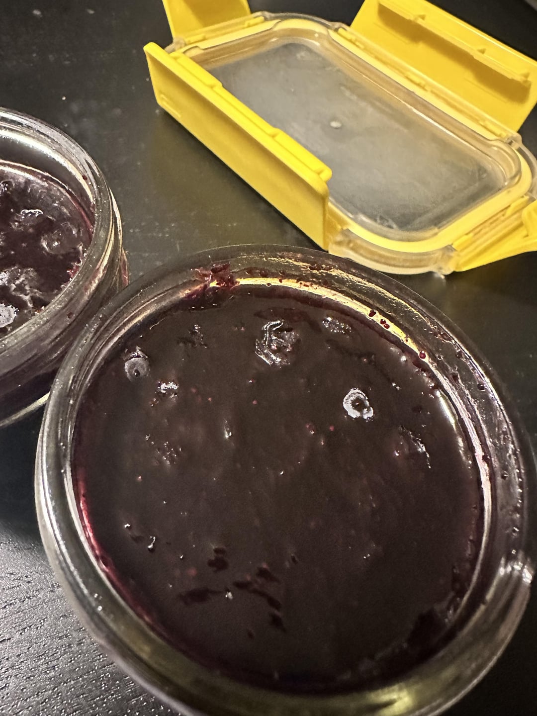 Blueberry jam water bath canned 2023-06-22. Used recipe found in the pectin package. I’ve been eating these and it’s been about a month since I’ve last had one. Smell seems fine but this is the first time I’ve noticed this?