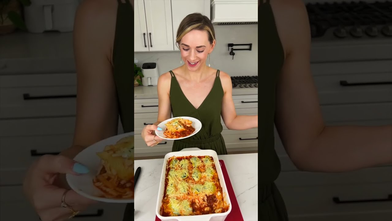 I create a yummy filling for stuffing pasta shells, and add them into a casserole.