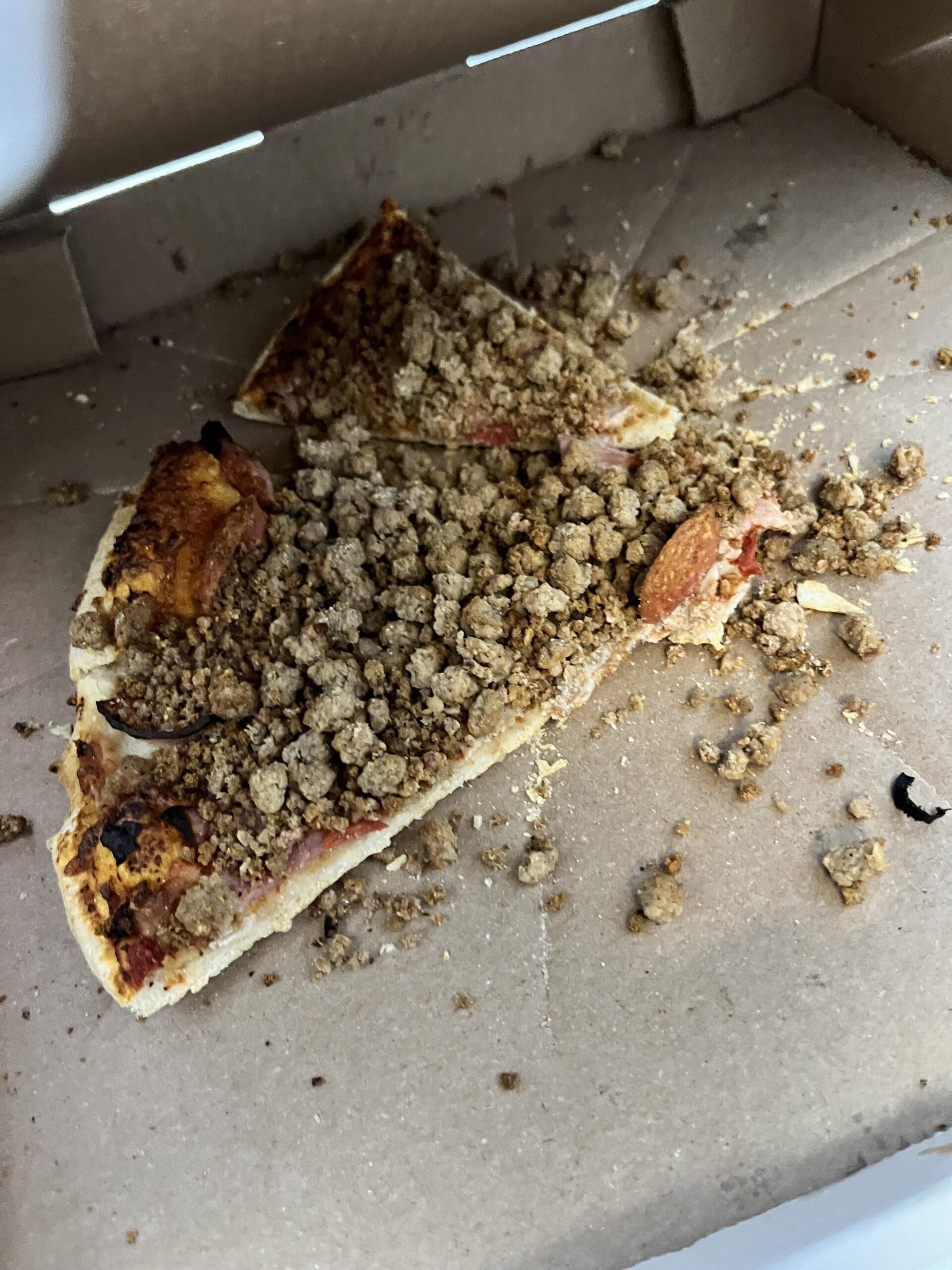 1. I’d have to see the order because if you asked for extra sausage that’s some r/deliciouscompliance. However I never realized how a non-greasy/dry looking pizza is somehow less appetizing.