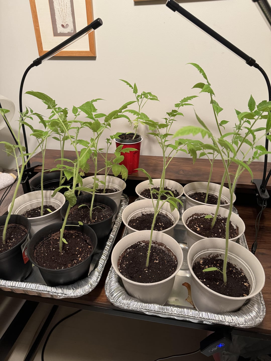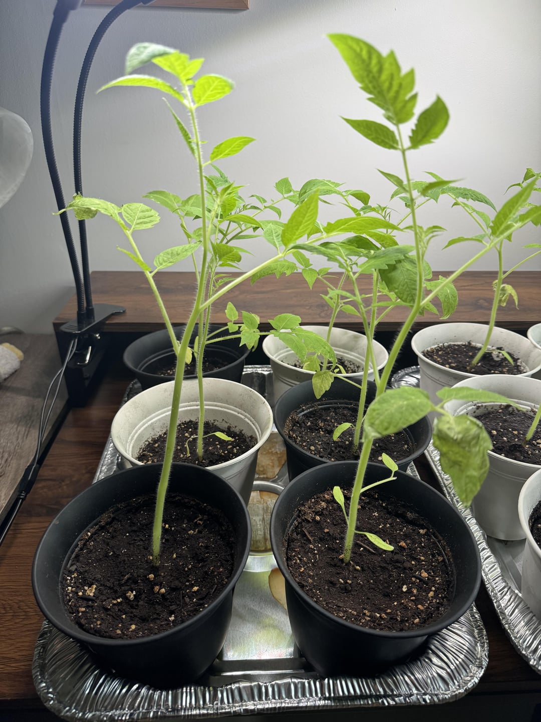 First time grower here, about three weeks ago I started to notice on my San Marzano tomato plants that some of the older leaves were starting to curl up. I didn’t think much of it at first, but then it started to get worse and worse each day I checked on them until now where pretty much all 13 of my plants have had their older / lower growth leaves shrivel up and fall to the ground, giving them the long slender appearance that you see. The entire branches either fell off on their own or I pruned them off. I posted about this maybe two ish weeks ago and some people seemed to believe that root rot is causing this, which I would understand as I definitely may have been over watering them (I now space out the watering to every 2-3 days) but I was reading up on root rot and some sources were saying root rot typically affects the newer / higher growth first? So not sure what to believe. I obviously should have tackled this problem much sooner so that’s on me, but I was wondering if there was any way I could save these plants from completely dying or if it’s just over at this point. Thanks!