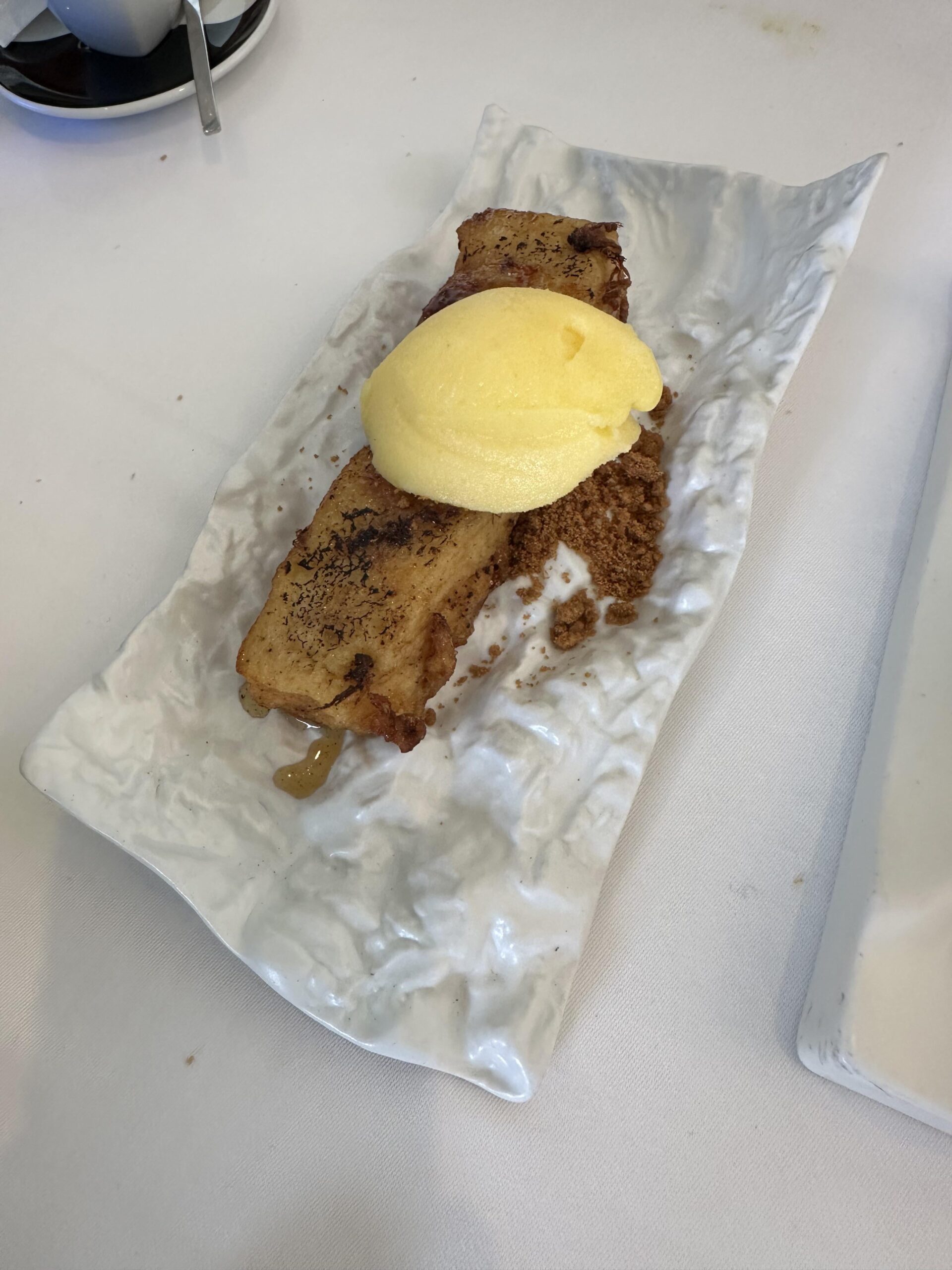 The desert was good, but the plate was like a ceramic crinkled piece of paper. Anything that fell in the crevices of the plate, you couldn’t eat. (Michelin rated restaurant)