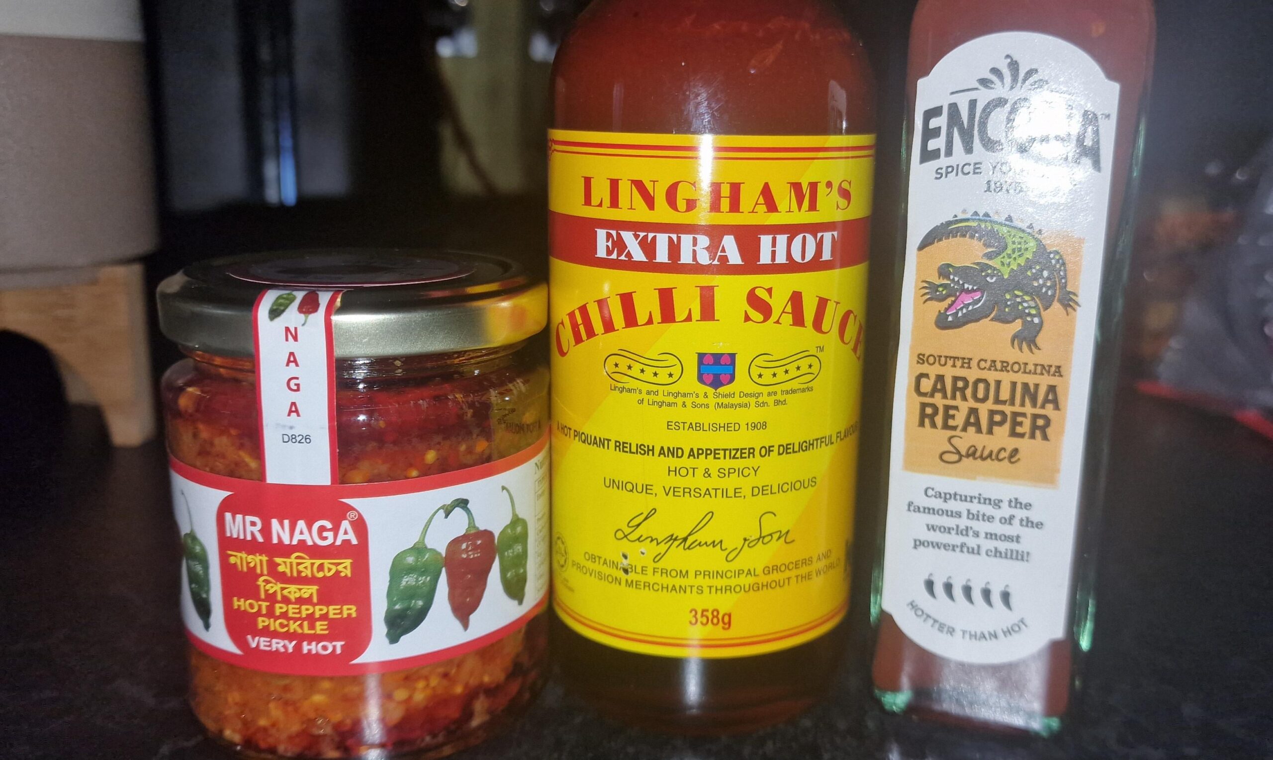 Encona make good quality commercial hot sauces. My only issue is they have removed natural vinegar and use the much cheaper industrially produced acetic acid instead. This does make the taste have a chemical undertone instead of the vinegar flavour. That said it is a reliable and decently tasty sauce.