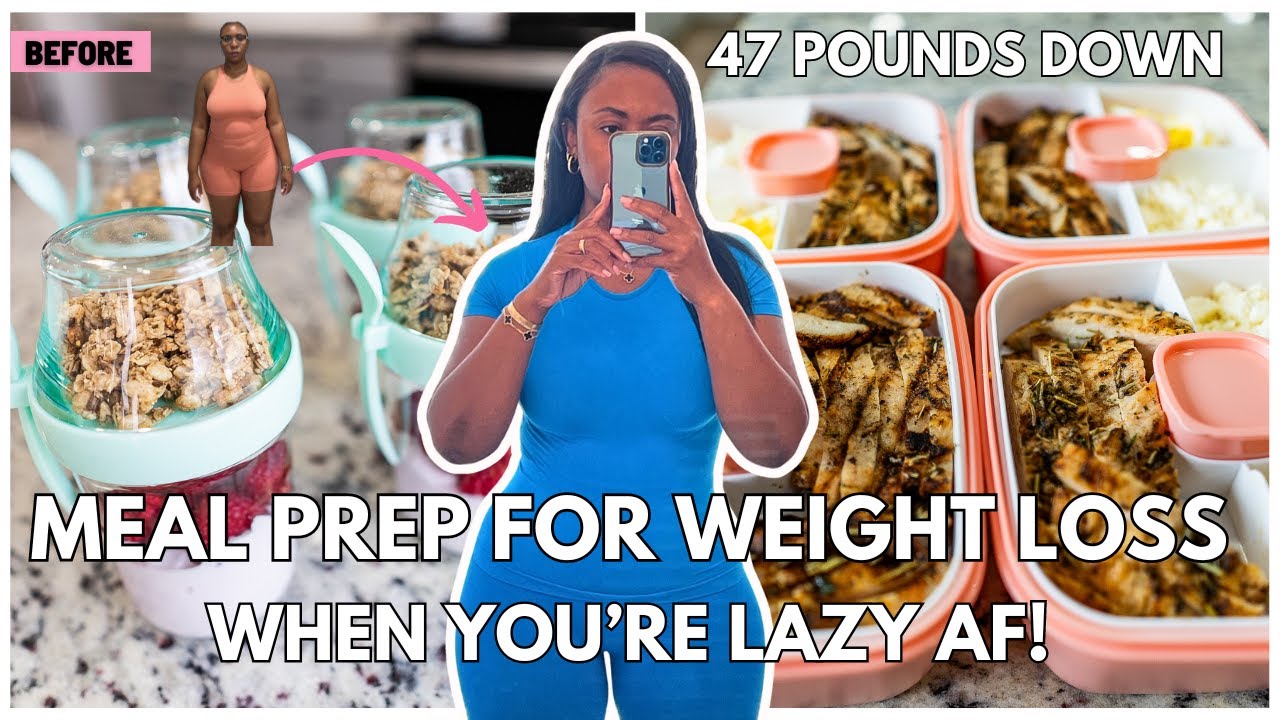 me up I come by 8m and text to your DM if you’re lazy I got you girl I am a lazy girl at heart and in order for me to stay consistent for the past 7 months on my weight loss journey I needed to make sure that meal prepping was simple and easy because if it ain’t easy I ain’t doing it I I ain’t doing it so so I’m going to show you all the tips and tricks I use to make sure that my meal prep is a breeze baby I am not spending hours in the kitchen this takes me in total maybe about 30 minutes to prep all of my meals breakfast lunch and dinner all of the meals are delicious they are high in protein and fiber and will keep you full all day long if you’re in a calorie deficit these meals are under 1,600 calories and you can also emit the snack to make it even lower if you need to dip that low and if you’re really ambitious and you want to get this weight off so we’re just going to get right into it let’s get this meal prep going for the week okay first up is our breakfast and we’re making a delicious strawberry shortcake protein overnight oats this is so good you guys this tastes definitely like dessert I love it because it’s super hot in protein and it’s a great source of fiber so you’re going to stay full for a long time after eating this what I love about this meal is not only does it take minutes to make and set up and prep but it is absolutely delicious it literally tastes like a strawberry shortcake I use regular oldfashioned oatmeal quicker oats happens to be the brand that I use but I think you can use whatever brand that you like for the protein I am using oneup nutritions Strawberry Shortcake ice cream protein this one has 25 gram of protein and it’s 160 calories per scoop so you’re going to stay nice and full and you’re going to get your protein dose for the morning so let’s get started with that [Music] oh [Music] [Music] all right so now that we’ve done our breakfast next up is lunch baby lunch is super simple we’re actually going to have a nice Garden salad with grilled chicken boiled eggs and some cherry tomatoes what makes this even easier for me I use already boiled eggs first and foremost I’m using a triple washed Garden salad that has your regular iceberg lettuce red cabbage and carrot but you can actually get any type of lettuce you want you can also use spinach or just a mixed spring salad it’s really your choice it’s your option but I love getting these from Sam’s Club I am a Sam’s Club girl Sam’s Club and Costco I prefer Costco I love Costco but there’s just some things that I can get from Sam’s Club that just makes life so much easier the other thing that I do once a week is I do grab these preg grilled Italian herb chicken these are so good you actually don’t need to add any seasoning to them they’re completely seasoned they’re super juicy and they’re freshly made we’re just going to cut this up and add this to our salad bowl pack them in our lunch boxes and we’re done we’re done now you can most certainly get you some raw chicken season it up go ahead and put it in the oven and do all of that stuff but I ain’t doing all of that I don’t have the time so if you’re like me and you don’t have the time and you want to save on doing all of that you’re literally just taking the chicken chopping it up taking your eggs chopping it up putting the salad in the bowl closing up the container and you are done baby lunch is done for the entire week tell me youall tell me an easier meal prep video on YouTube I’ll wait yeah yeah okay so for our cheese I love feta cheese I just got this big container of feta cheese from Sam’s Club it’s about 70 calories for 28 G and then for dressing I love Olive Garden salads for the most part if I go to Olive Garden I’m going to Olive Garden for the salad and the bread sticks and so I got the Olive Garden salad dressing is the signature Italian it is about 80 calories for 2 tbsp or 31 G okay guys for our salad we are going to be using this really cute salad lunch box that I got off of Amazon I’ll link it down below for you guys what I love about it is that it has this compartment that you can use to separate your protein any of your croutons or any other size that you want to add to your salad that prevents your salad from getting soggy and just yucky it also has this cute little cup inside that you can put your salad dressing in to keep everything separated and it’s a perfect serving size I believe it’s 2 tablespoons of dressing these compartments are all removable so you can take this part out and you can sit it on your scale and weigh all of your ingredients and then after that you pop it right in here get your salad dressing in and then you have a perfect portioned salad so let’s get started packing our lunch for the [Music] week doing my taking a moment to bre feeling dress out give it a good I put that on good when it gets cold stay on my job like days so [Music] you catch a break give a pretty brown girl space you can keep your I’m make a better hey hey already got the world on me a pretty brown girl you can keep your I’m going make a better way hey hey [Music] better Mom and Dad’s only daughter do I make you proud My Life lyrics to your life seeking me [Music] give it a good put that on good when it get stay on my job like no okay guys so next up is going to be my favorite which is my yogurt parfait Bowl I just really really love this snack it never gets old to me you can swap out the berries for raspberries strawberries blueberries whatever you like like in today’s video we’re going to be using some fresh raspberries and I always always always use the oos trip zero Greek yogurt I really like this one because it has 15 g of protein it’s already prepackaged and it’s 90 calories you really can’t beat that for my granola because I’m trying to prioritize fiber like I said in the past I use the kind cinnamon oat granola with flax seeds i