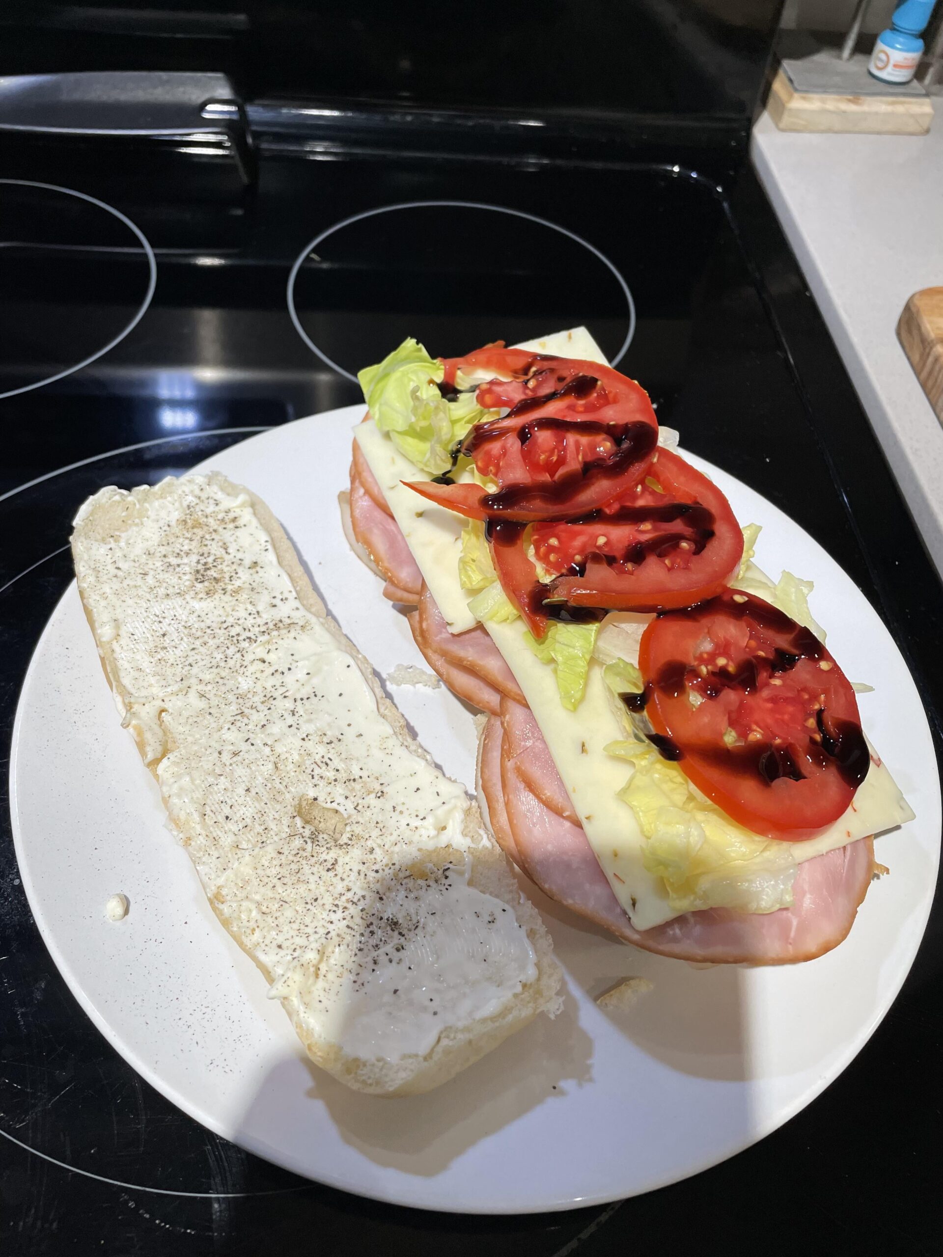 ham, turkey, mayo, pepper jack, lettuce, toms, balsamic vin, and pepper. on a deli sub by DistributionFit8930 Write A CommentYou must be logged in to post a comment.