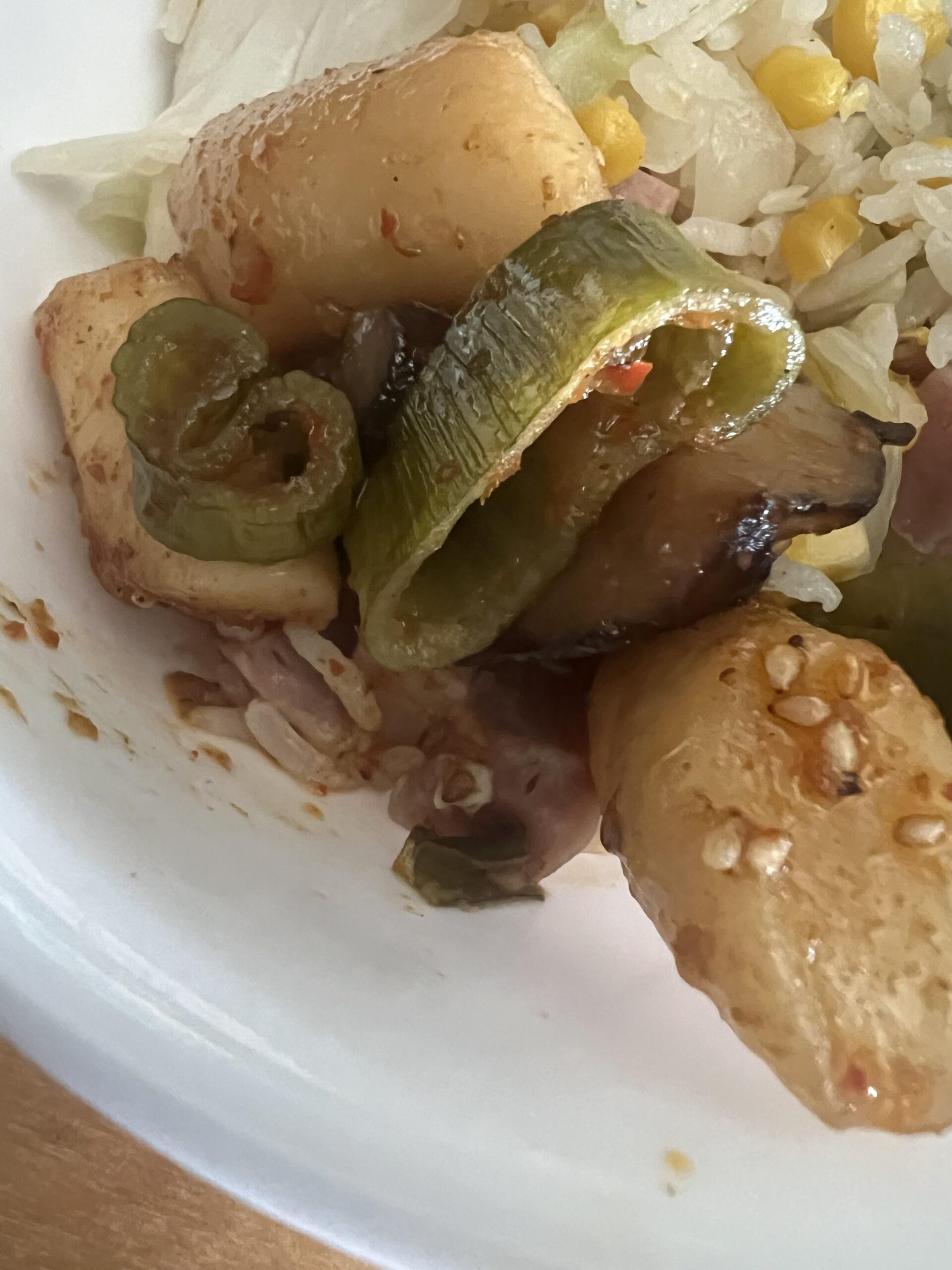 I got this from a Korean lady that doesn’t speak English. What are these green circles? I thought leak but they got more bite to them, I was thinking maybe a pepper of some sort?