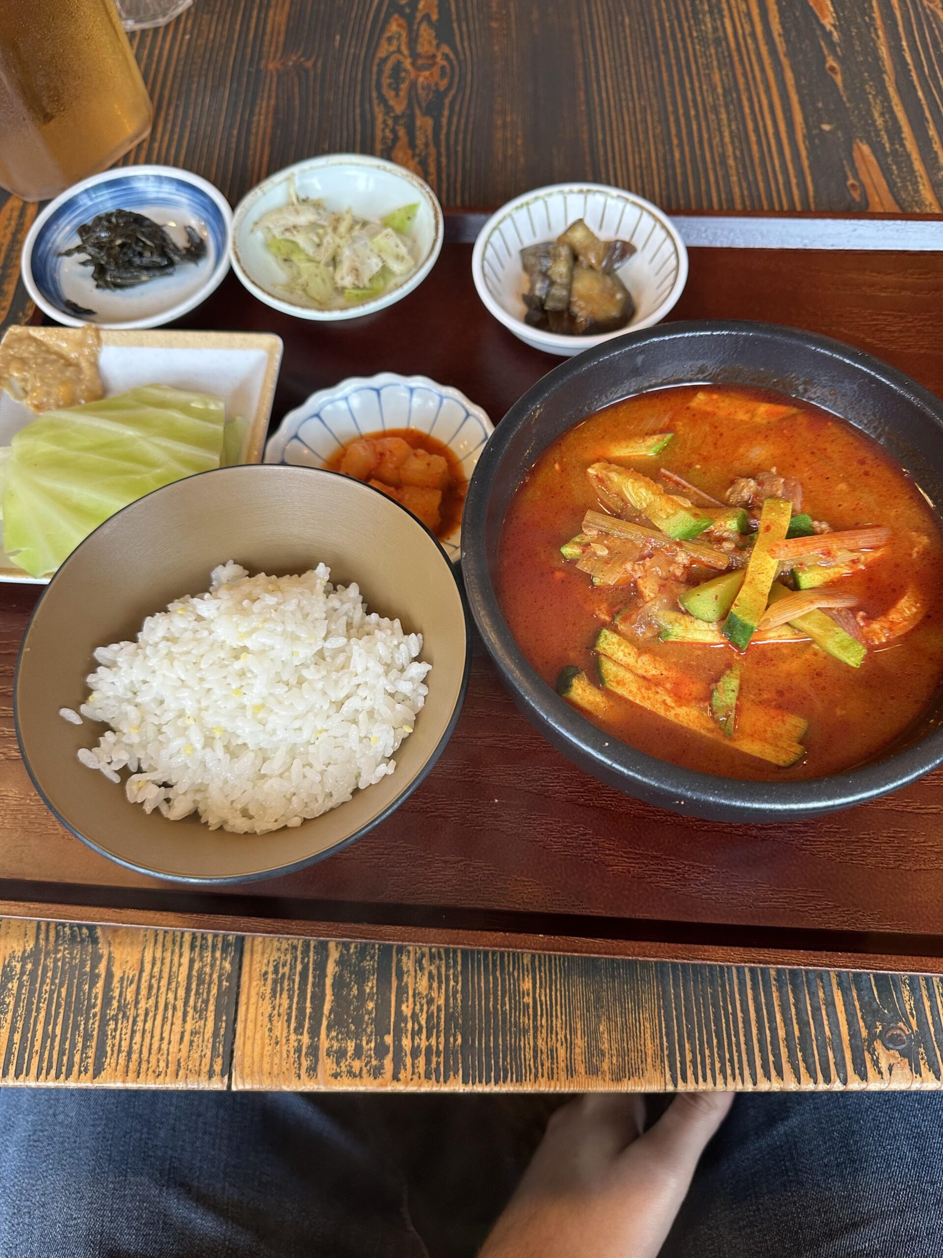 Today I ordered this meel, what is what here? I really liked it.Bottom left – rice by vidara15 3 Comments YongeFinch_Starbucks 2 years ago Someone correct me if im wrong but it sort of looks like yukgejang? But the presence of zucchini is really throwing me off. BJGold 2 years ago 호박고추장찌개 (zucchini gochujang jjigae) curryp4n 2 years ago How did you order something you don’t even know?Write A CommentYou must be logged in to post a comment.