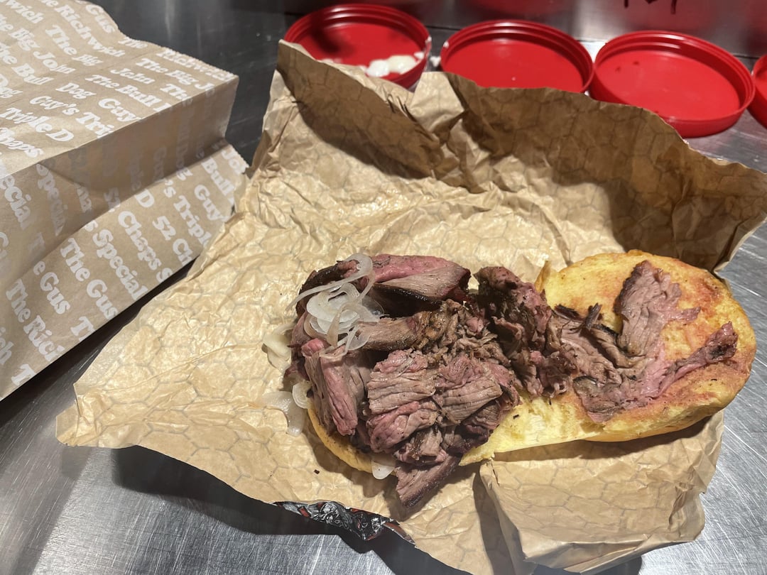 Pit Beef piled well, thin sliced onion, “tiger” sauce.If you know you know… Chaps Baltimore original location.Was in town for three days visited them twice.The char flavor and quality is hard to beat!!!by meegwell01 7 Comments Sooperballz 2 years ago Looks great. I’ve always loved my pit beef with too much horse radish mixed with bbq sauce ElectricTomatoMan 2 years ago Onion decoration slatchaw 2 years ago Good bite, great chew apex_super_predator 2 years ago Stupid question but what exactly is “pit beef” and which cut is it? AM1fiend 2 years ago (Wee Bey voice) “Extra horseradish” travturn 2 years ago Been wondering what Pit Beef sammiches were for years since first hearing about them on The Wire. Elronbattletoad 2 years ago Man I miss that so bad rn can’t get any in the DMVWrite A CommentYou must be logged in to post a comment.