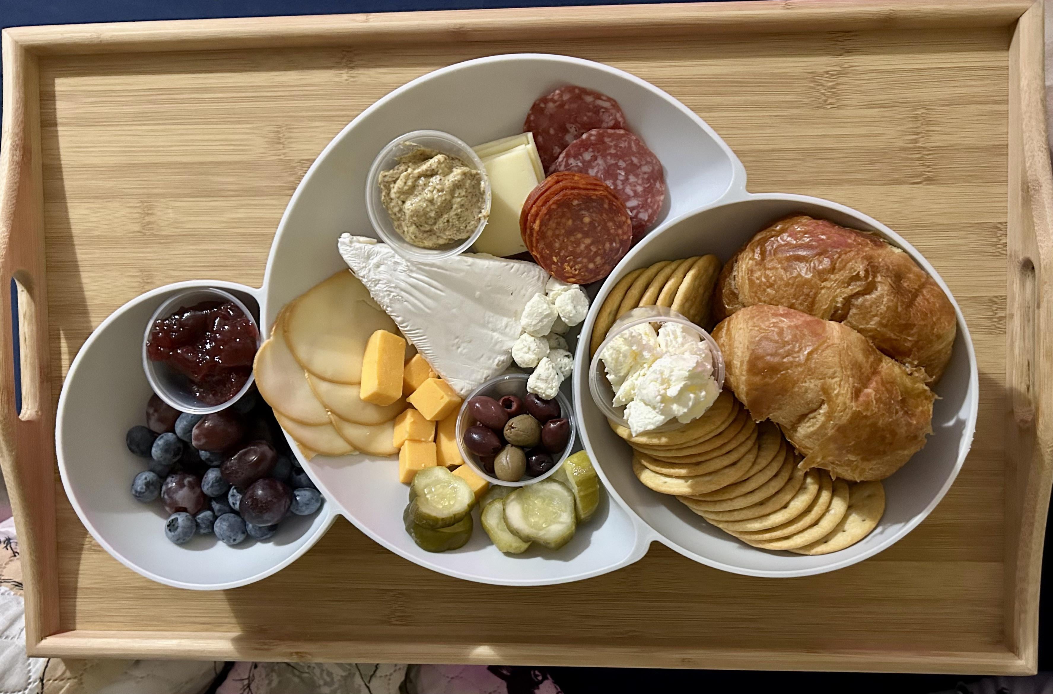 Made my husband a little charcuterie tray with his favorite things and used this cool chip and dip bowl from Aldi to contain it so we could eat while binge watching his favorite show while cuddling in bed.