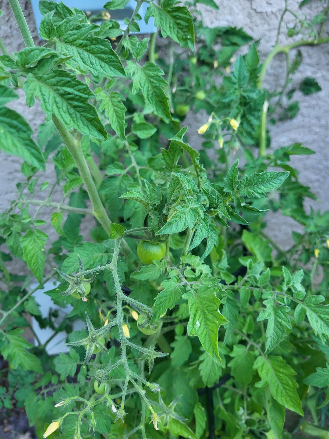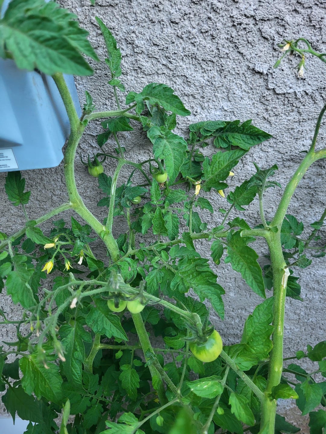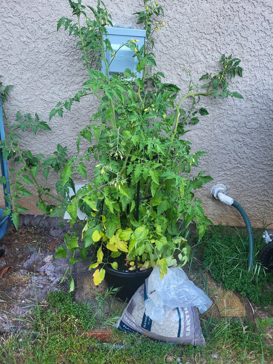 I know nothing about growing tomatoes. I recieved this large cherry tomato from a friend, which is already flowering and bearing a number of green tomatoes. However, it is in an extremely small pot, and I wanted to know if is possible to transplant, without harming the plant, at this size. The plant seems to be doing well but I am concerned that it may not be getting enough nutrients from the soil that it is in.