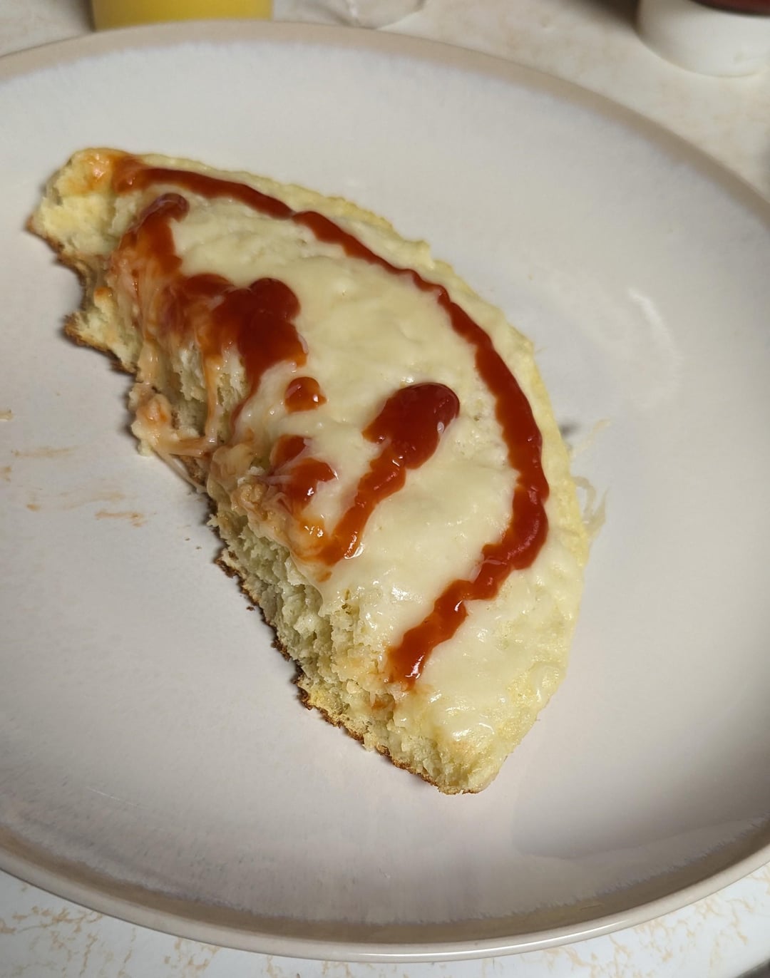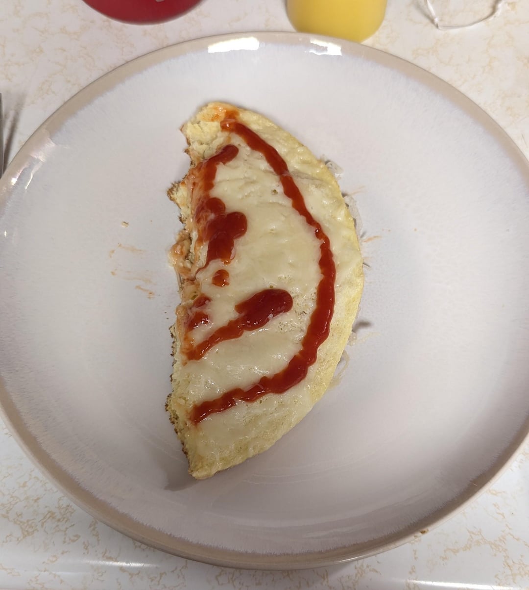 I topped with shredded Italian cheese blend ketchup. I liked it a lot . Definitely not your regular omelet.