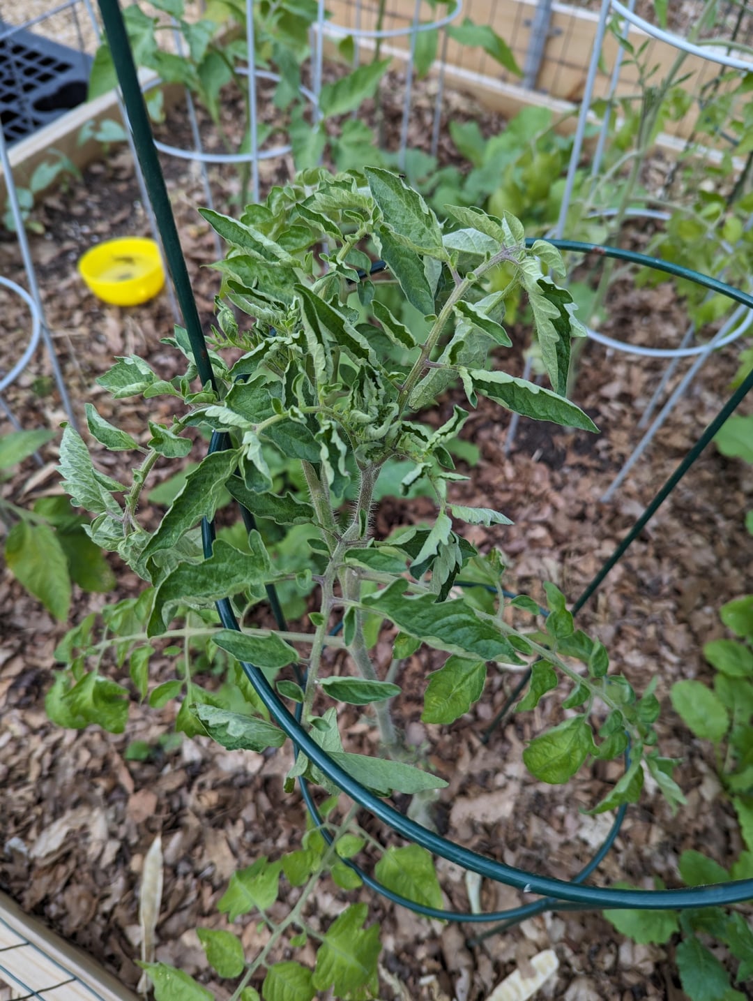 So, I transplanted these about a week and a half ago, and then we got about a week of heavy rain. Is this transplant shock and excess water or the dreaded leaf curl virus? What should I do?