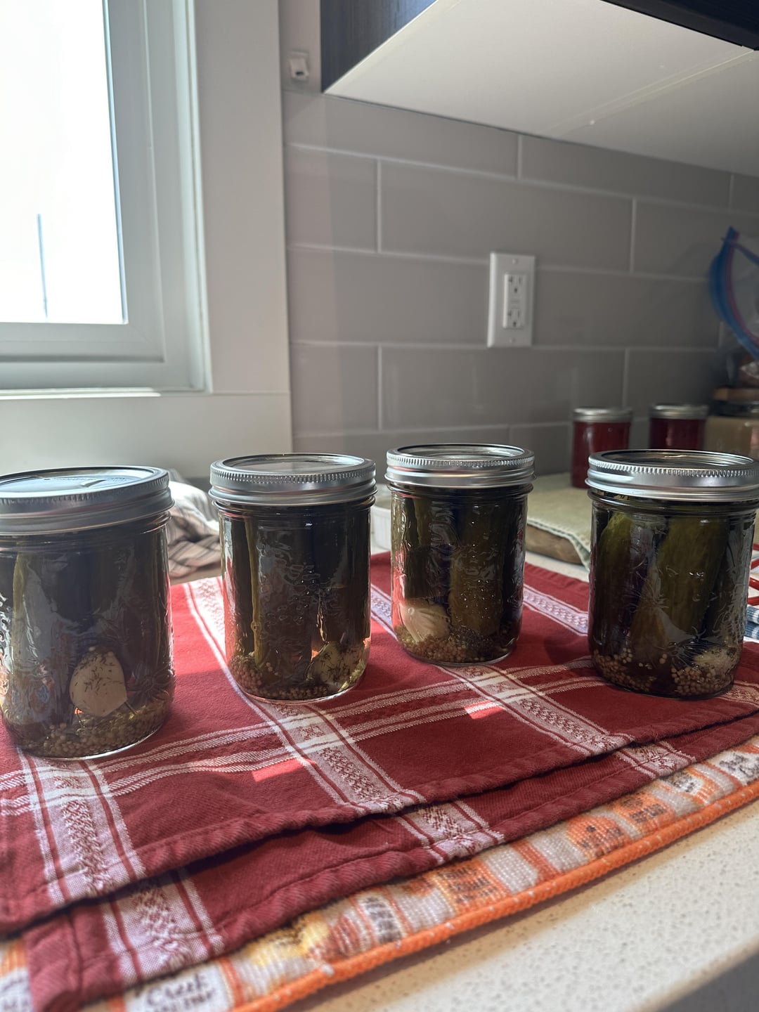 The one we made has more vinegar to water vs the Bernardin. But Bernardin has more salt. We also weren’t able to use the full amount of cucumbers in the end because they were too big! Still obviously used the correct size/amount of jars though. Anyway, after reading an article someone posted on here about substitution and how you should not substitute dry herbs with fresh… I’m worried that using the tbsp of fresh dill will mess with the acidity. I’m also just quite nervous being a newbie haha.