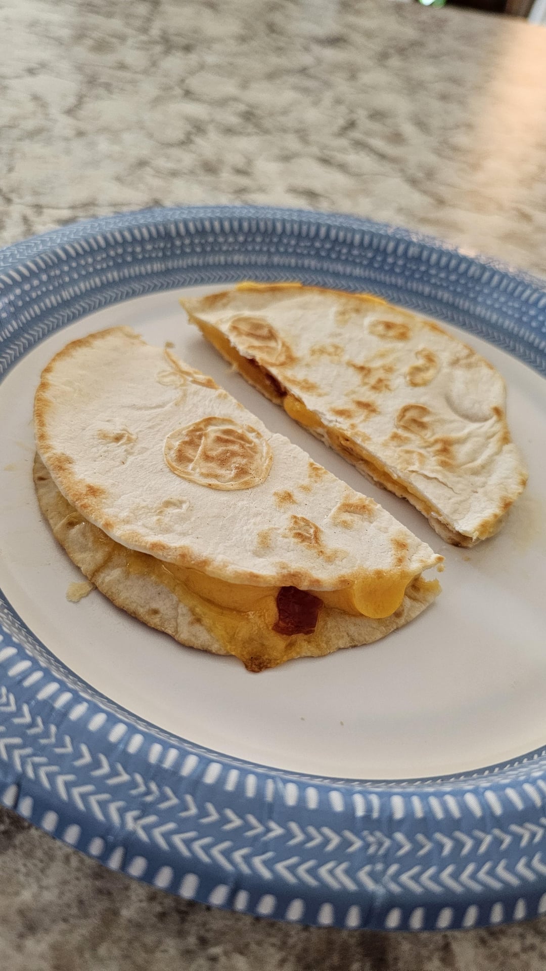 Quesadilla using zero net carb tortilla, sharp cheddar, and small pieces of pepperoni.. I figure it's only one or two carbs total.by Jean19812 1 Comment samiel 2 years ago Was one filling enough? Very close to doing a quesadilla.Write A CommentYou must be logged in to post a comment.