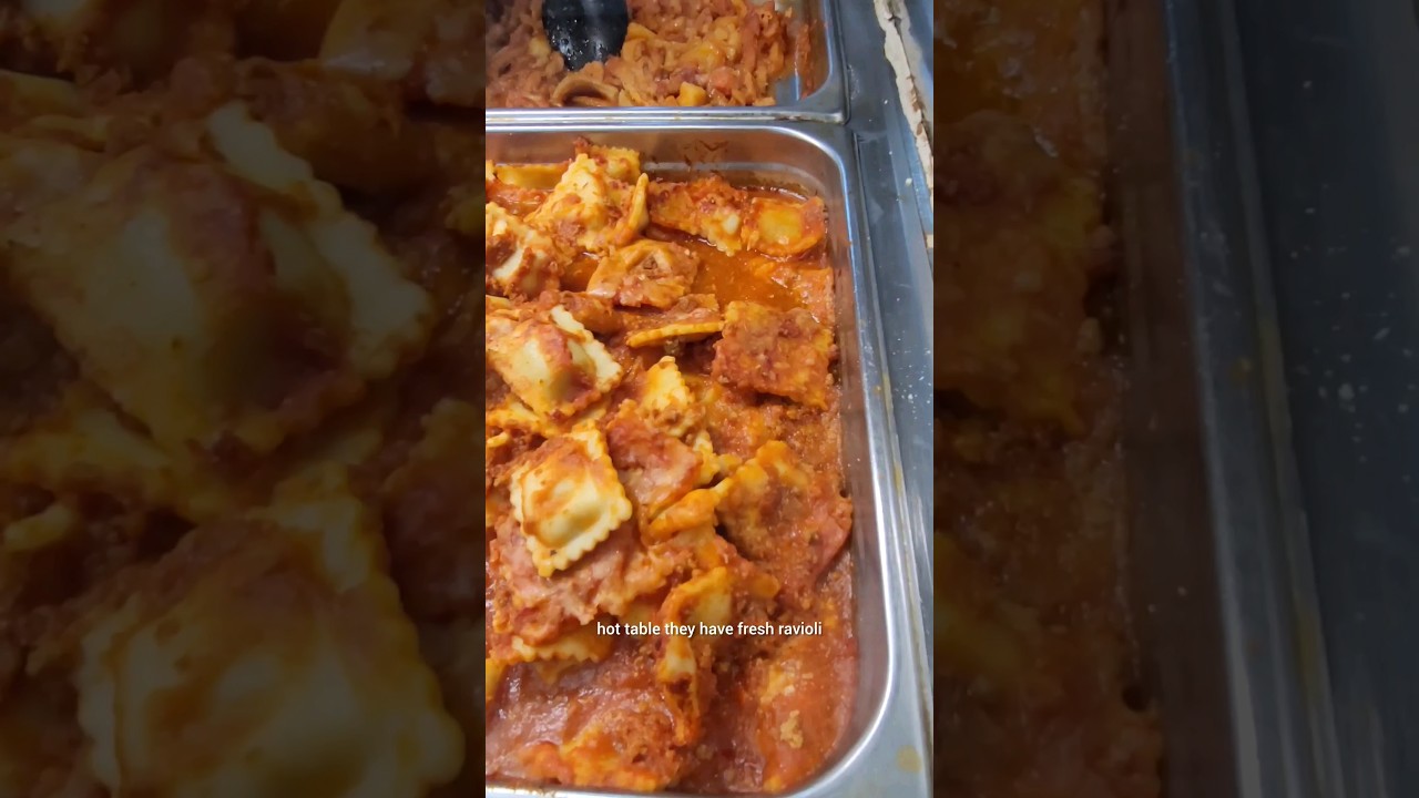 this they have Italian Hot Table over here these rice balls over here they have pizza slice they have different rice balls and with different fillings I’m looking for the one which is more on the vegetarian side Hot Table they have fresh ravioli um chicken is there chicken with the potatoes here’s the lasagna lemon this is one of the fastest selling items